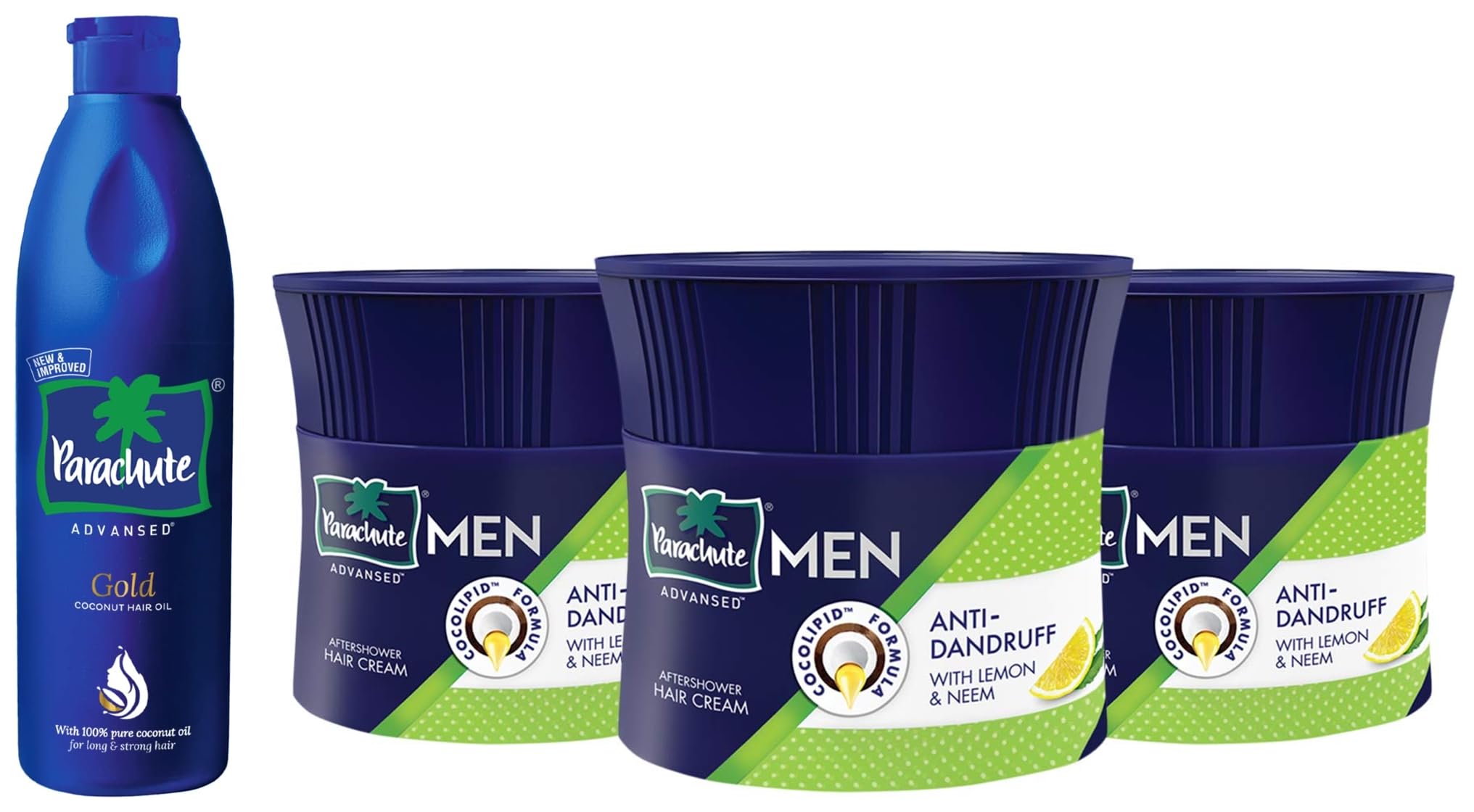 Parachute Hair Cream for Men (100ml x 3) Anti-Dandruff and Advansed Gold Coconut Hair Oil (400ml) Pure Coconut Oil with Vitamin E