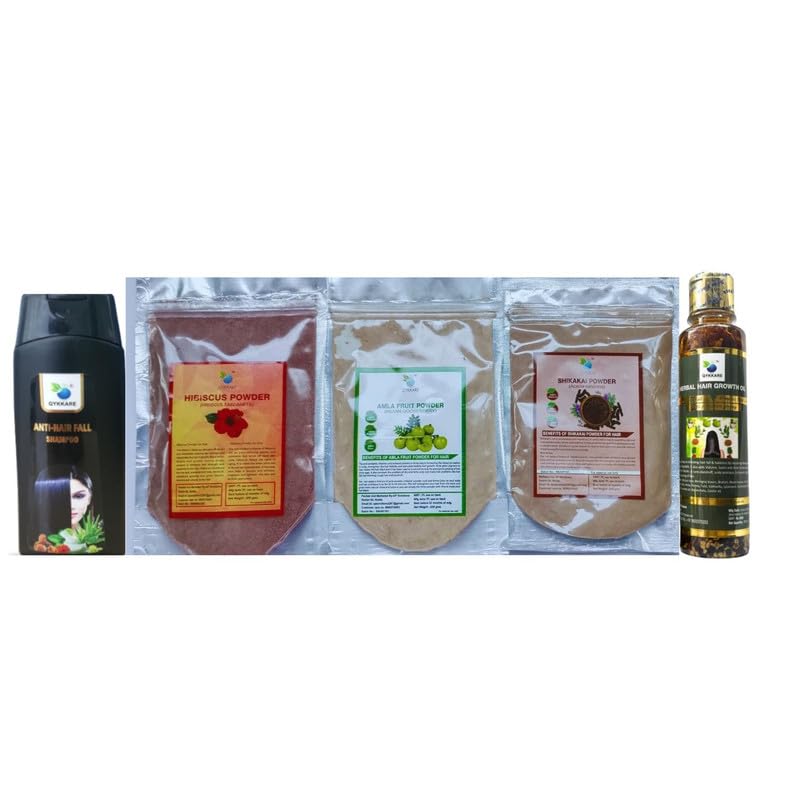Introducing our comprehensive Hair Care Kit featuring a harmonious blend of natural ingredients designed to nurture and enhance your hair's natural beauty. This kit includes a revitalizing hair oil a gentle shampoo and three powerhouse powdersâAmla Shikakai and Hibiscusâeach selected for their rich histories and traditional uses in hair care. This collection offers a holistic approach to hair maintenance allowing you to indulge in a self-care ritual that celebrates the essence of nature. Amla Powder is renowned for its rich nutrient profile. Traditionally used in hair care it is often praised for its potential to nourish and the appearance of hair. hikakai Powder is another key ingredient in this kit known for its natural cleansing properties. Used for centuries in various cultures shikakai is often referred to as "fruit for the hair. Hibiscus Powder adds a vibrant touch to this kit celebrated for its rich antioxidants and nourishing properties. The natural ingredients encourage a connection with traditional practices reminding you of the power of nature in nurturing beauty. Ultimately the Hair Care Kit serves as a celebration of natural beauty and holistic self-care. By incorporating these traditional ingredients into your routine you can enjoy a nurturing experience that honors the rich history of hair care practices from around the world. This kit offers you the tools to explore the benefits of natural ingredients while creating a personalized regimen that suits your individual needs.