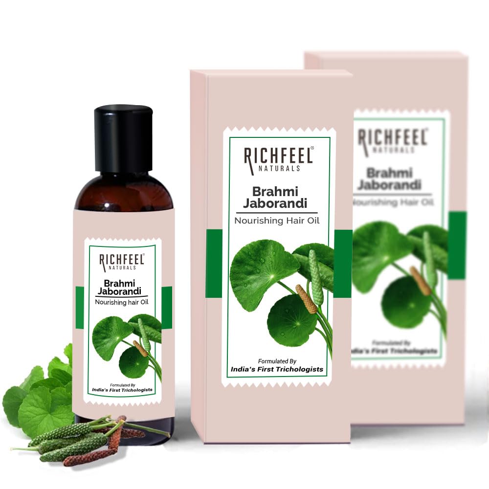 Product Description: RichfeelBramhi Jaborandi Hair Oil is enriched with the goodness of Brahmi and Jaborandi. Brahmi is a traditional Indian herb known to be an Ayurvedicremedy for many hair problems and Jaborandi is an herbal plant from Amazonian tropical forests known to solve many hair issues. Richfeel has been characterized by continuous innovation and a strong focus on ology for the hair and Naturals Therapies for the skin and hair which has been acclaimed and adopted worldwide. About Richfeel Jaborandi Hair Oil: 1. Richfeel Jaborandi Hair Oil nourishes and conditions the scalp. 2. This hair oil is a prerequisite for Naturals &healthy hair 3. For best results mix Richfeel Hair Nourisher with Richfeel Jaborandi Oil and apply to scalp and hair 4. 4. Suitable for all hair types. Benefits of Jaborandi: - Helps in hair growth - Improves dry scalp - Improves circulation to scalp - Provides soothing effect Benefits of Brahmi: - Moisturizes hair - Nourishes the roots well and accelerates hair growth by thickening the roots - Helps keep the scalp cool - Strengthens the hair follicles - Treats split ends - Restores its lost lustre - s volume and bounce to hair texture - Prevents dandruff - s hairfall How to use? Section your hair and apply the oil in scalp as well as from root to the tip. Proceed with a through massage of 15-20 minutes which ensures a good circulation and helps the oil to get penetrated into hair shaft for deep nourishment.