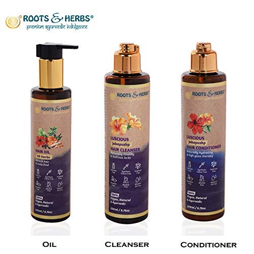 Roots & Herbs Ayurvedic Natural Treatment 100% Vegan No Paraben Sls Sulphate -the Ultimate Wedding Regime 49 Herbs Hair Oil Luscious Jabapushp Cleanser and Luscious Jabapushp Conditioner Combo Pack