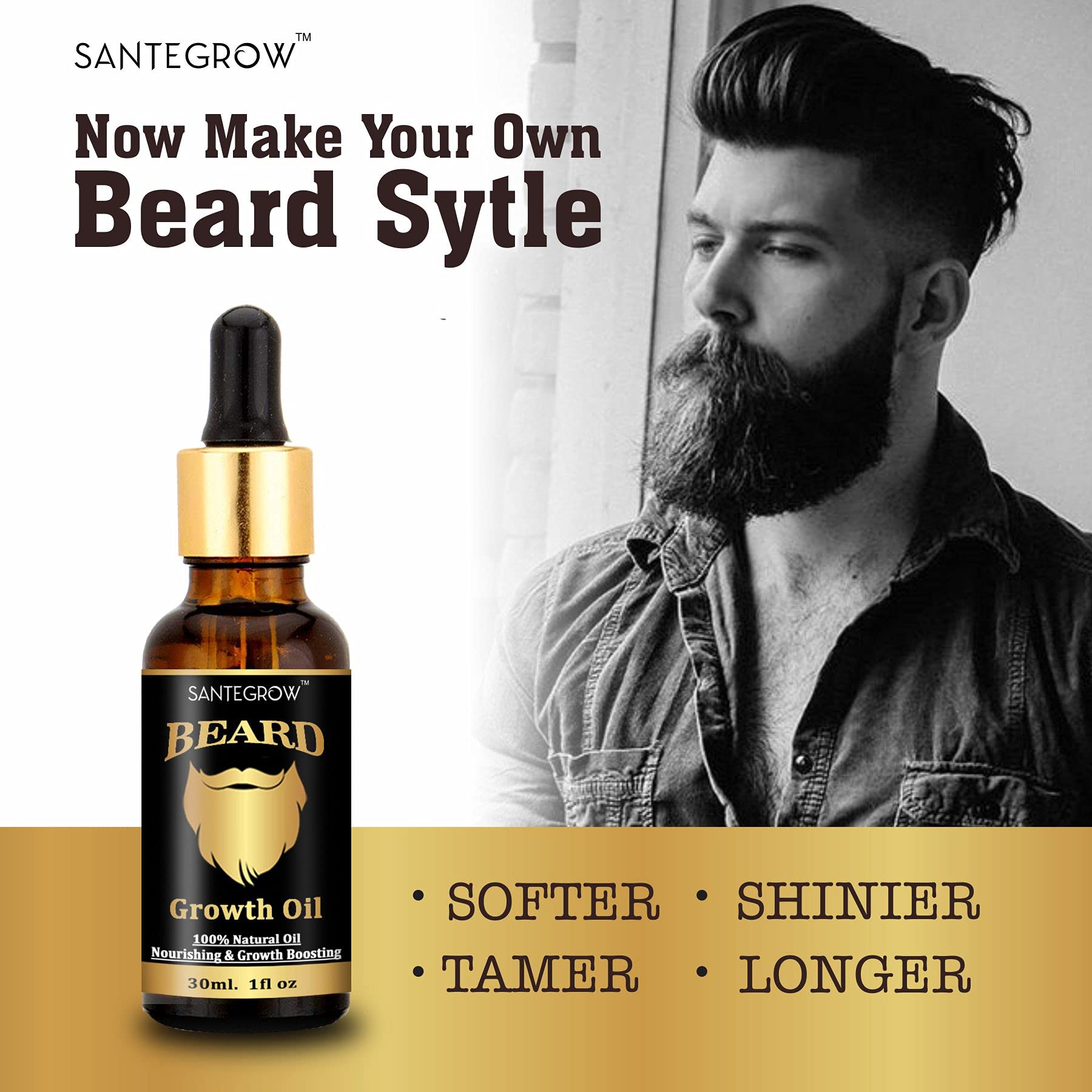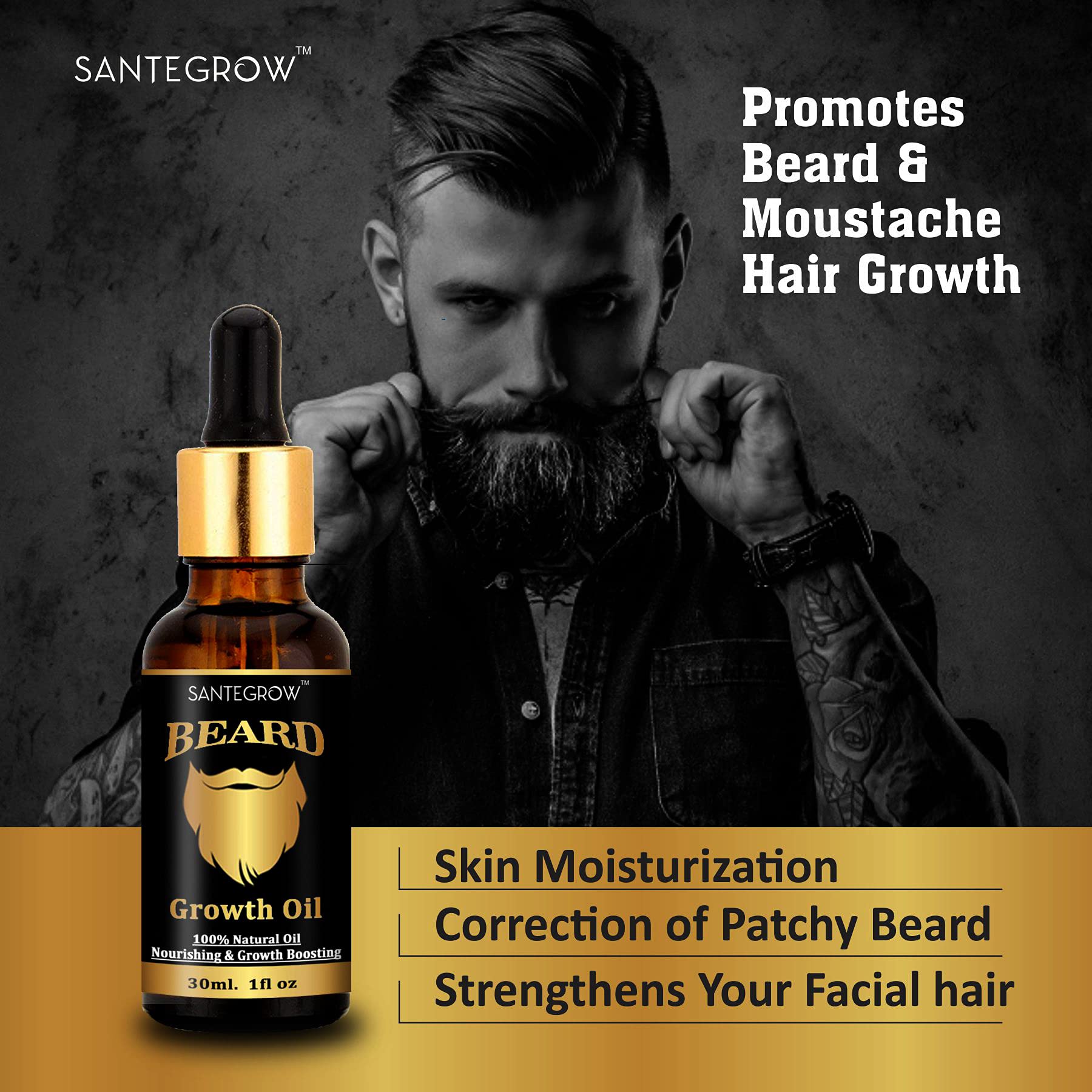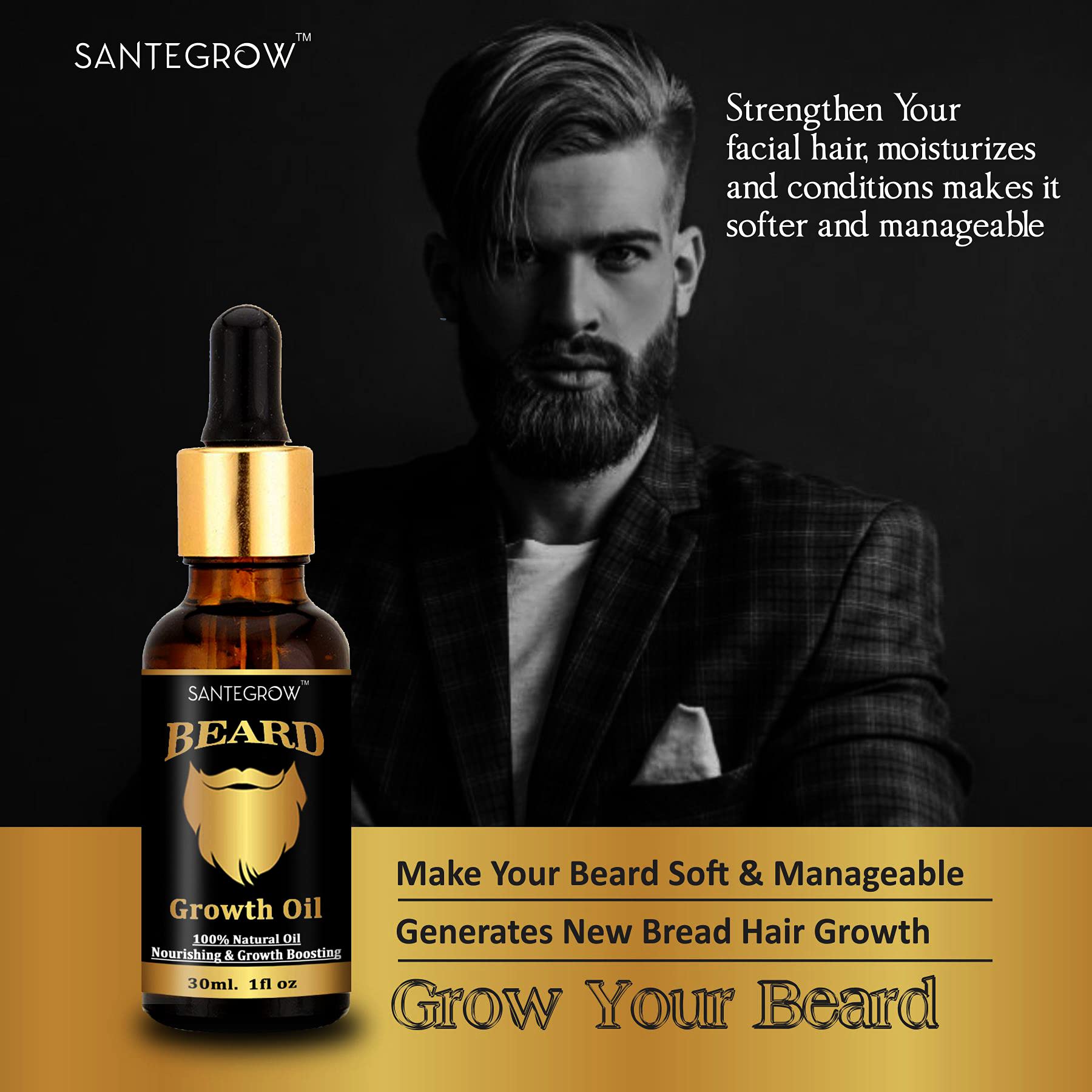 Santegrow Beard Oil - Hair Growth | Softener | Conditioner | 100% Natural - 30mL