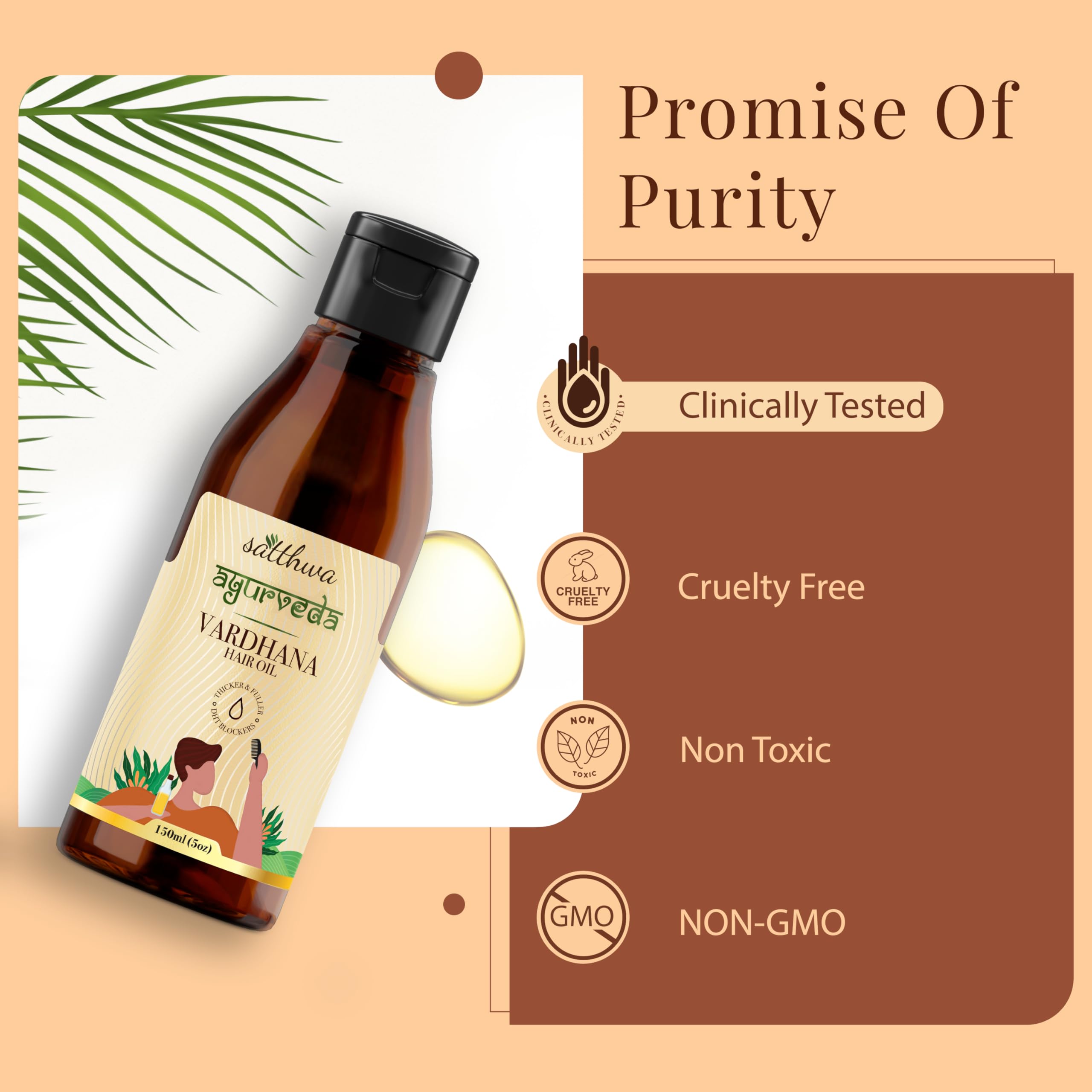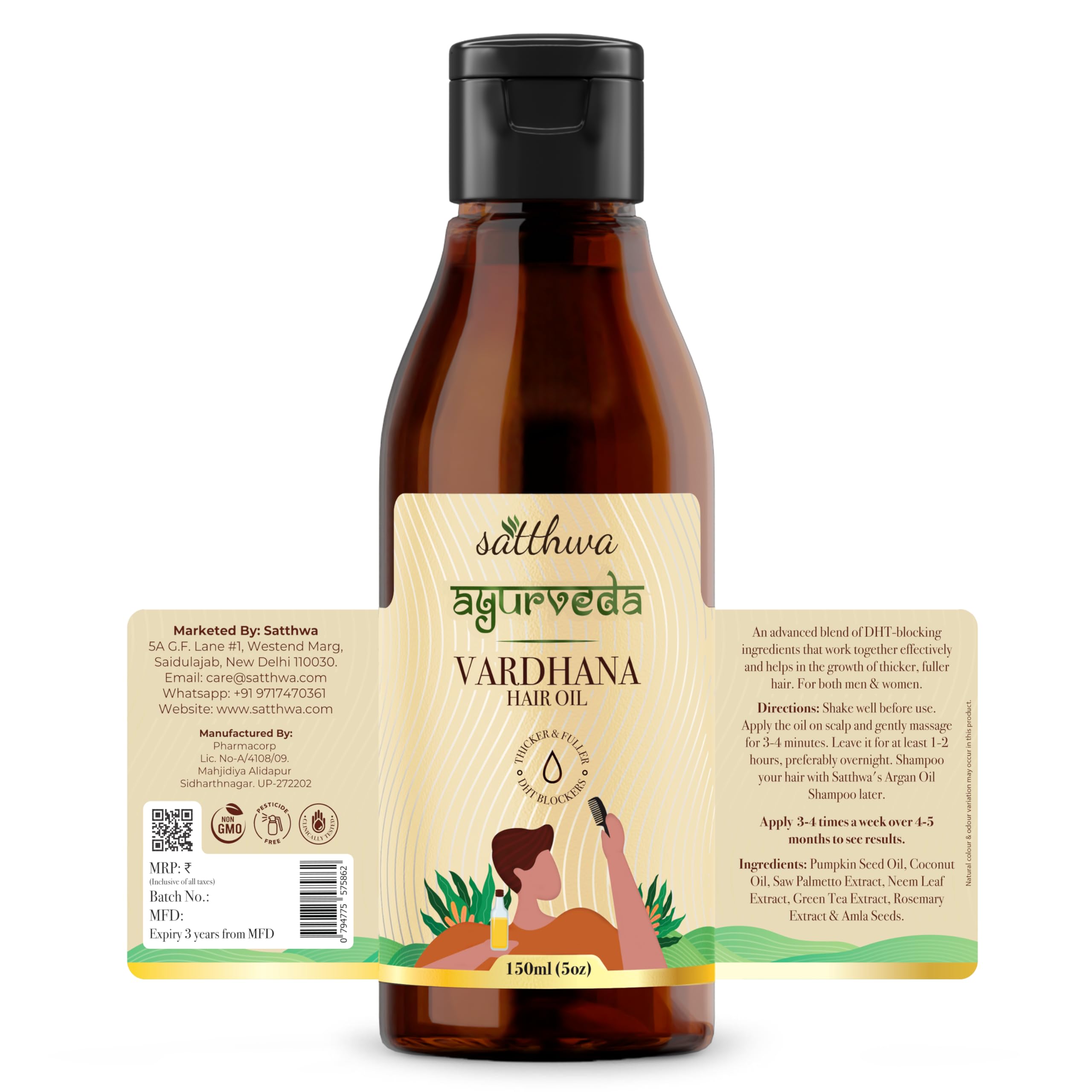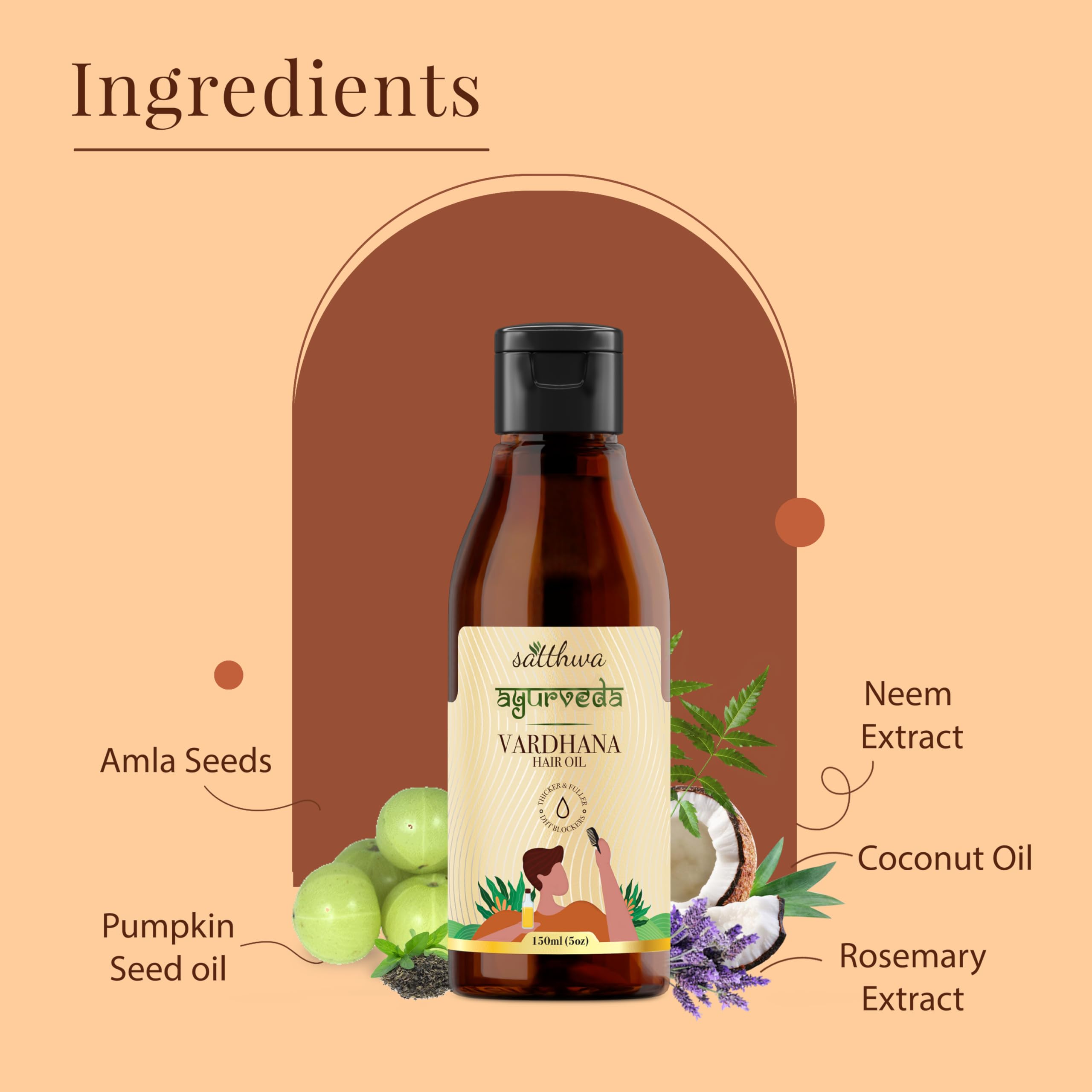Satthwa Ayurveda Vardhana Hair Oil | With Pumpkin Seed Oil & Saw Palmetto as Natural DHT Blockers | Helps Control Hair Fall and Strong hair | Paraben Free - 150ml