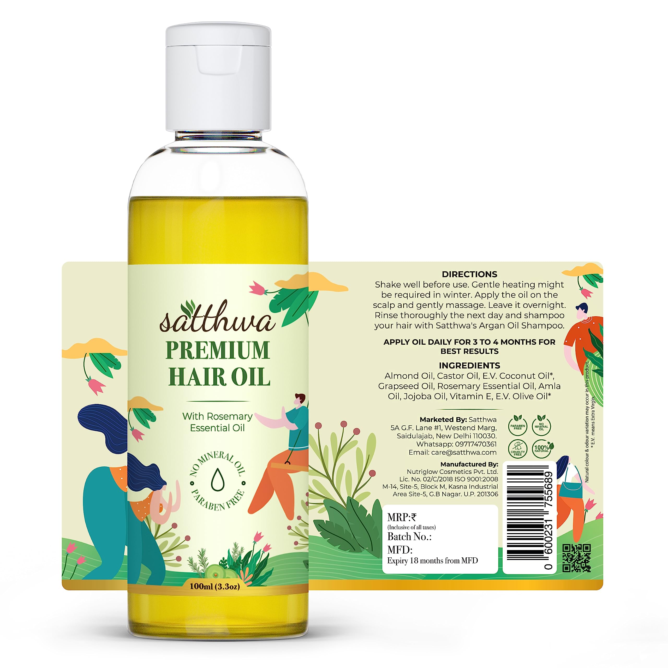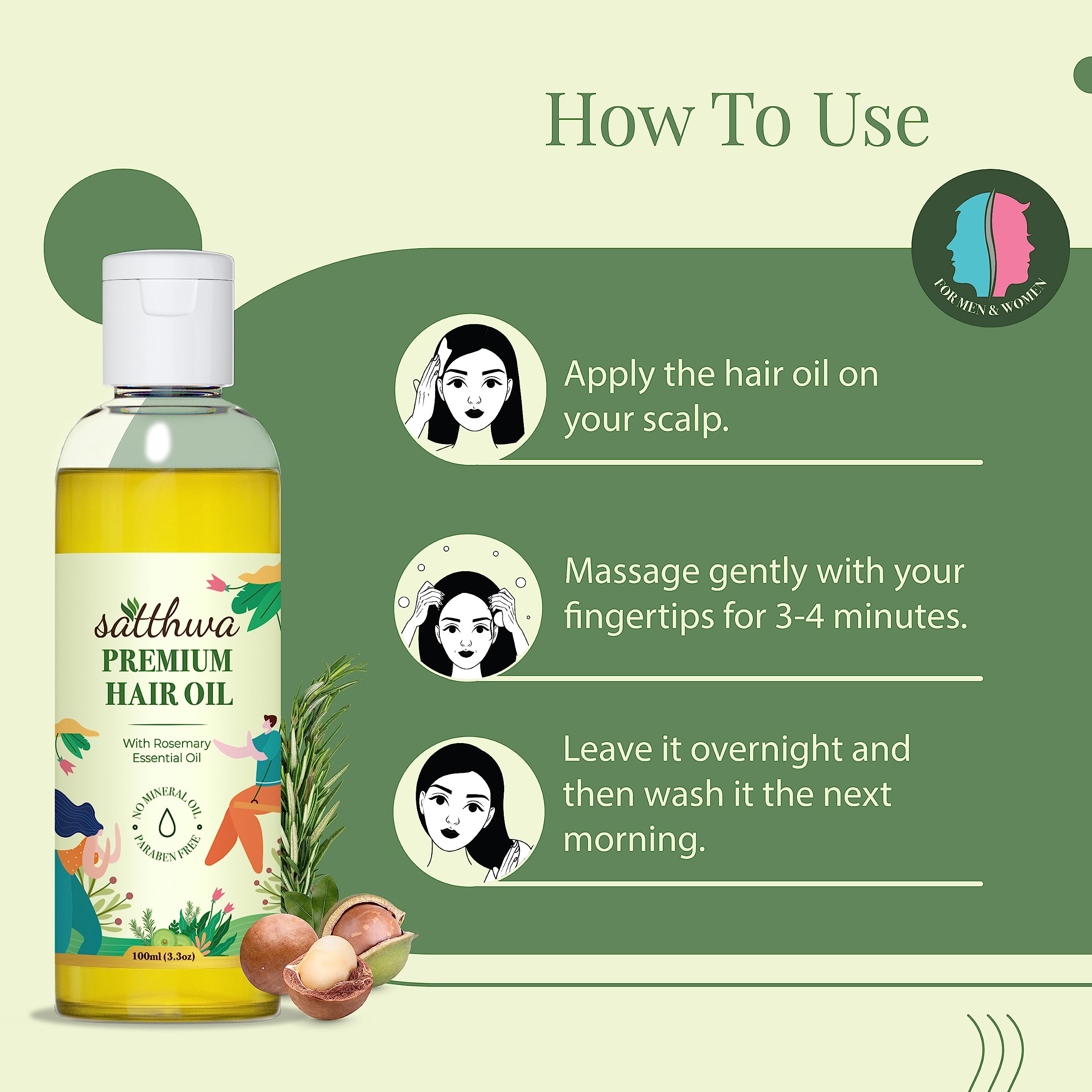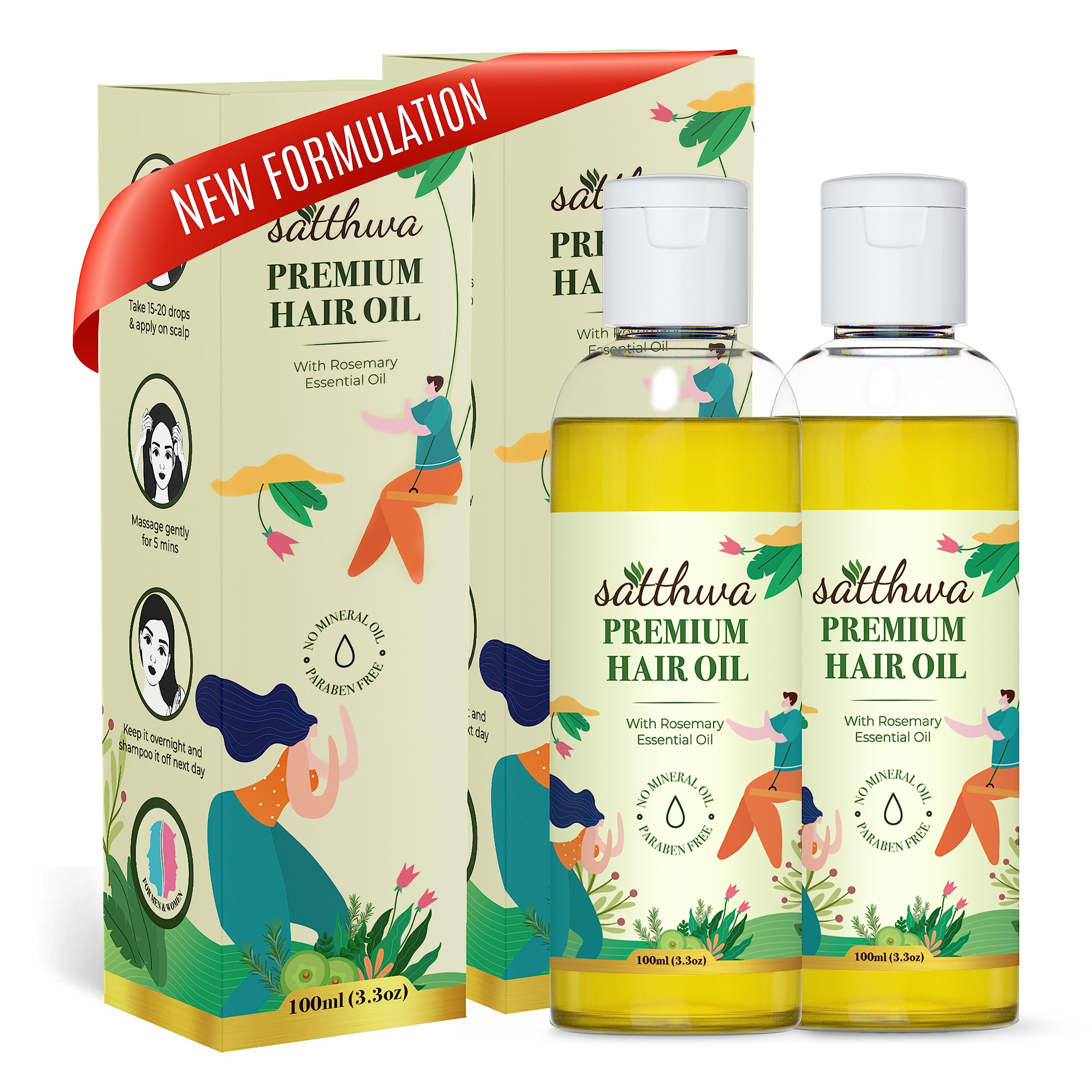 Satthwa Premium Hair Oil with Rosemary | 9-Oil Blend | Minimises Hair Fall | Supports Hair Growth & Boost Density | Fights Dandruff | Paraben Free | 100mlx2 | 3.3ozx2