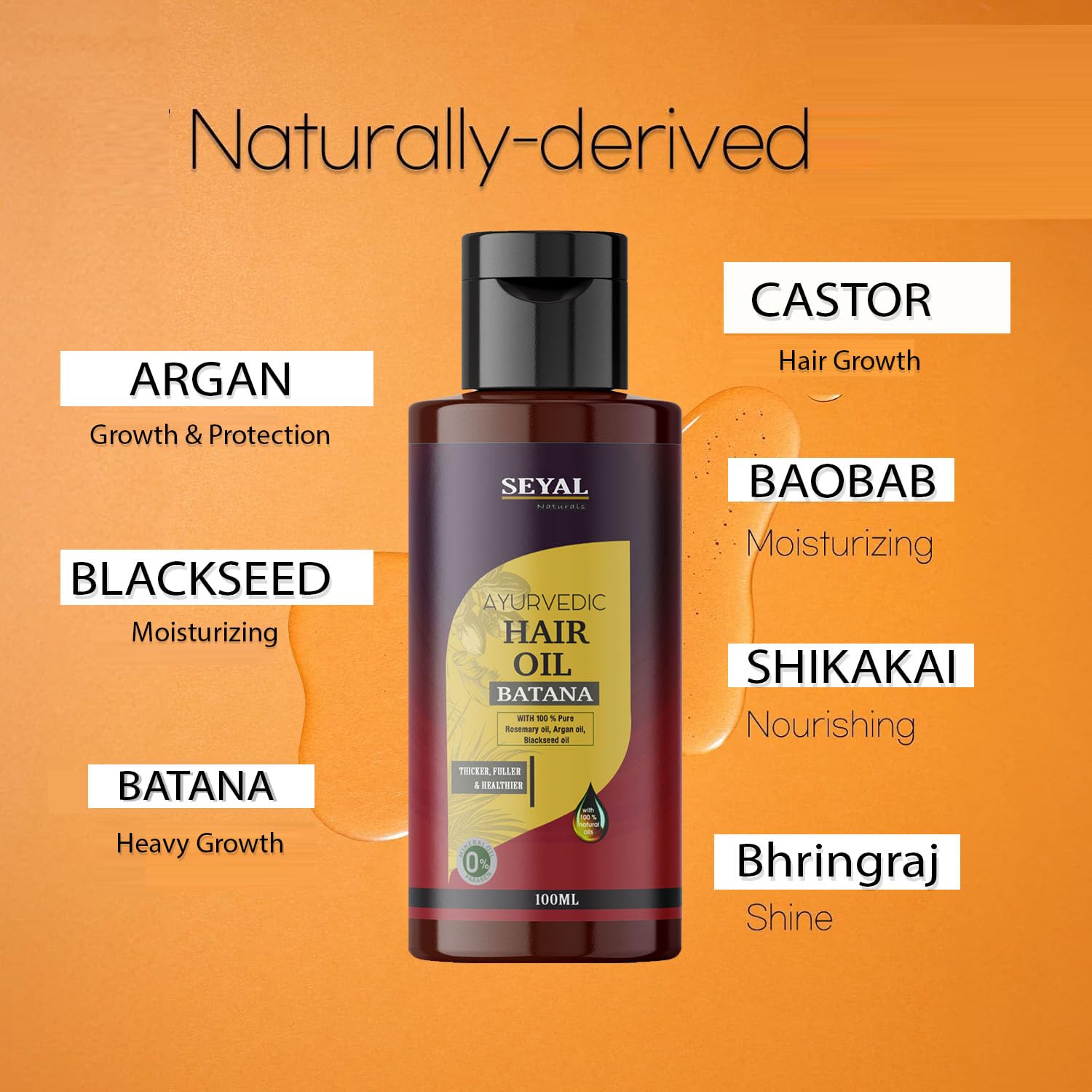 Seyal Batana Hair Oil Hair Growth Oil with Shikakai Argan Oil & Rosemary 100% Pure Ayurvedic Oil for all Hair Types - 100ml