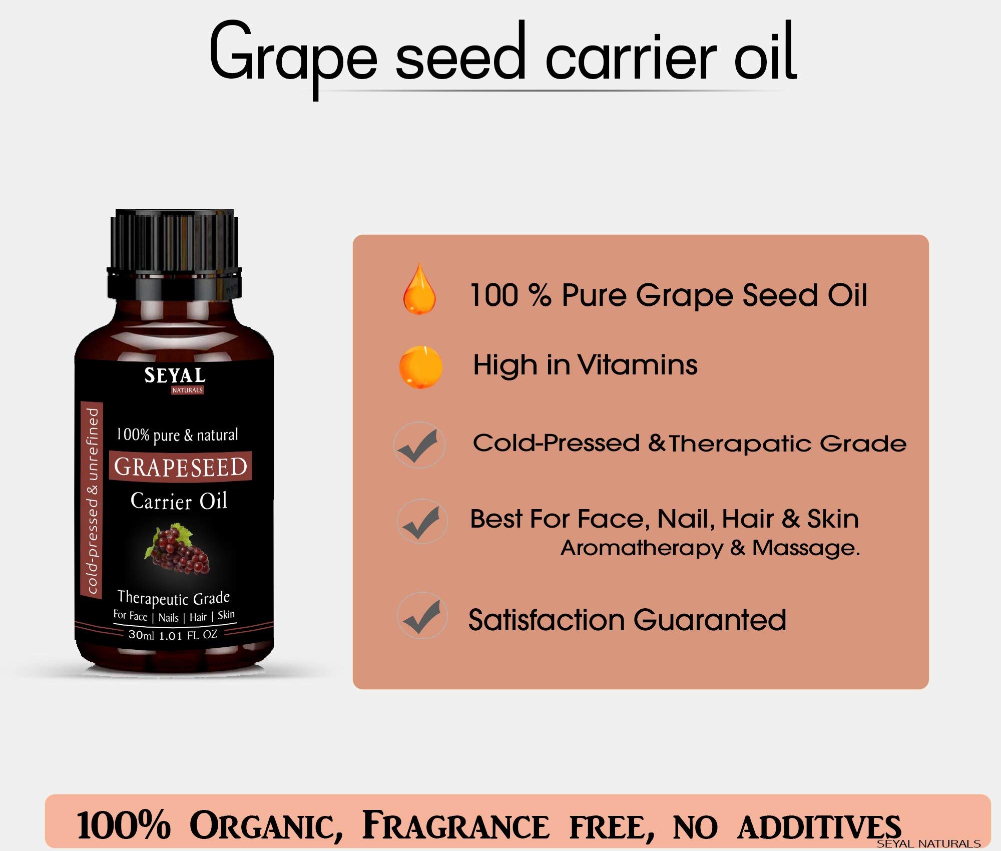 Seyal Grapeseed Oil 100% Pure & Organic Cold Pressed Therapeutic Grade for Hair & Skin - 30ml