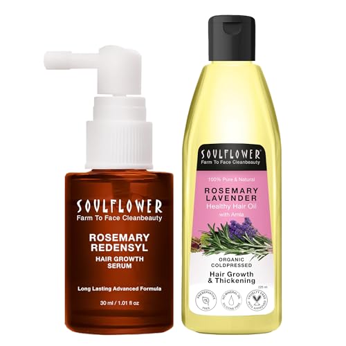Soulflower Rosemary Redensyl Serum has long-lasting advanced formula darkening booster- infused with potent proven and effective ingredients like Rosemary Redensyl Melanogray & Anagain to fully restore hair density prolong hair cycle give hair growth and boost melanin production.