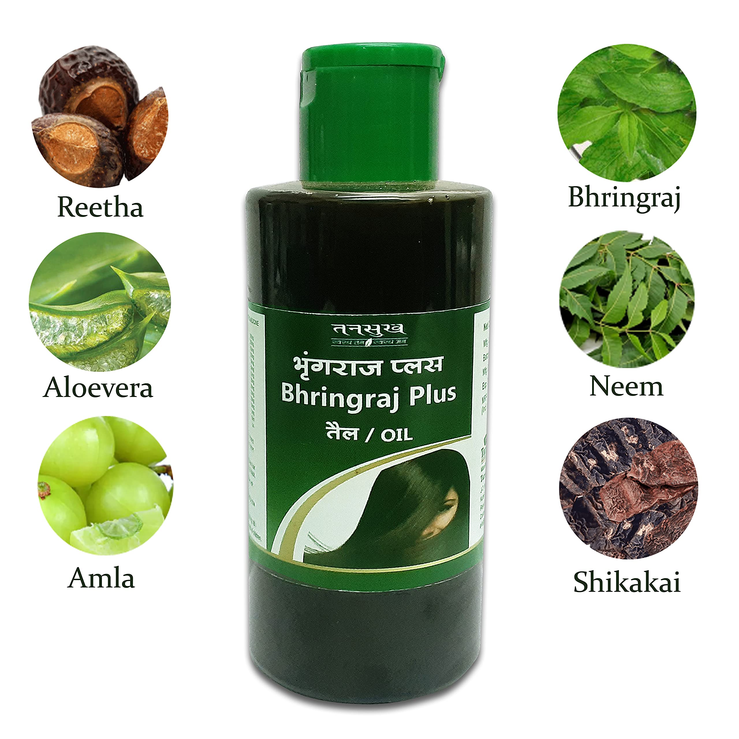 Tansukh Bhringraj Plus Ayurvedic Herbal Hair Oil 200ml | Helps in Greying Hair Hair Fall Dandruff | Nourishes Hair Follicles