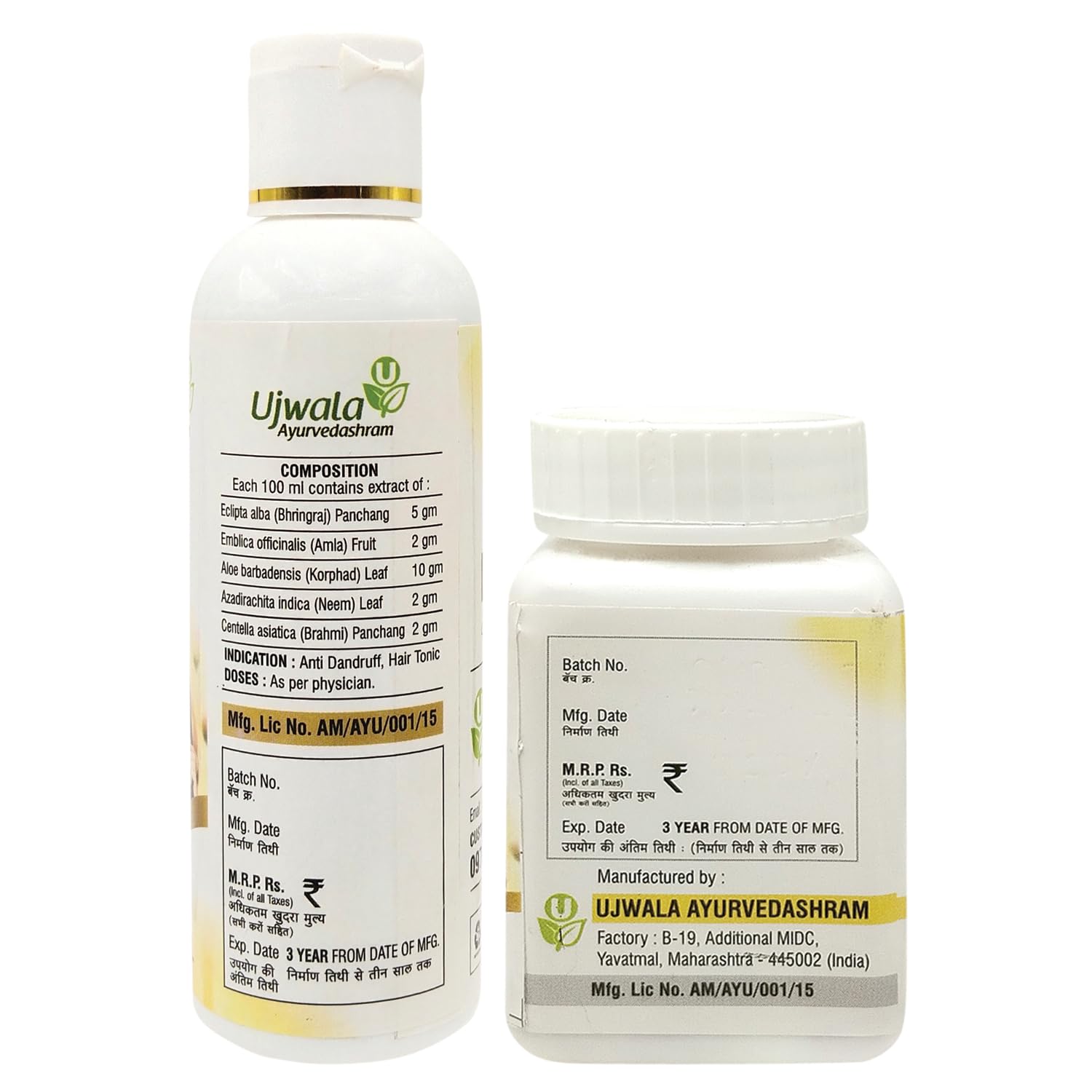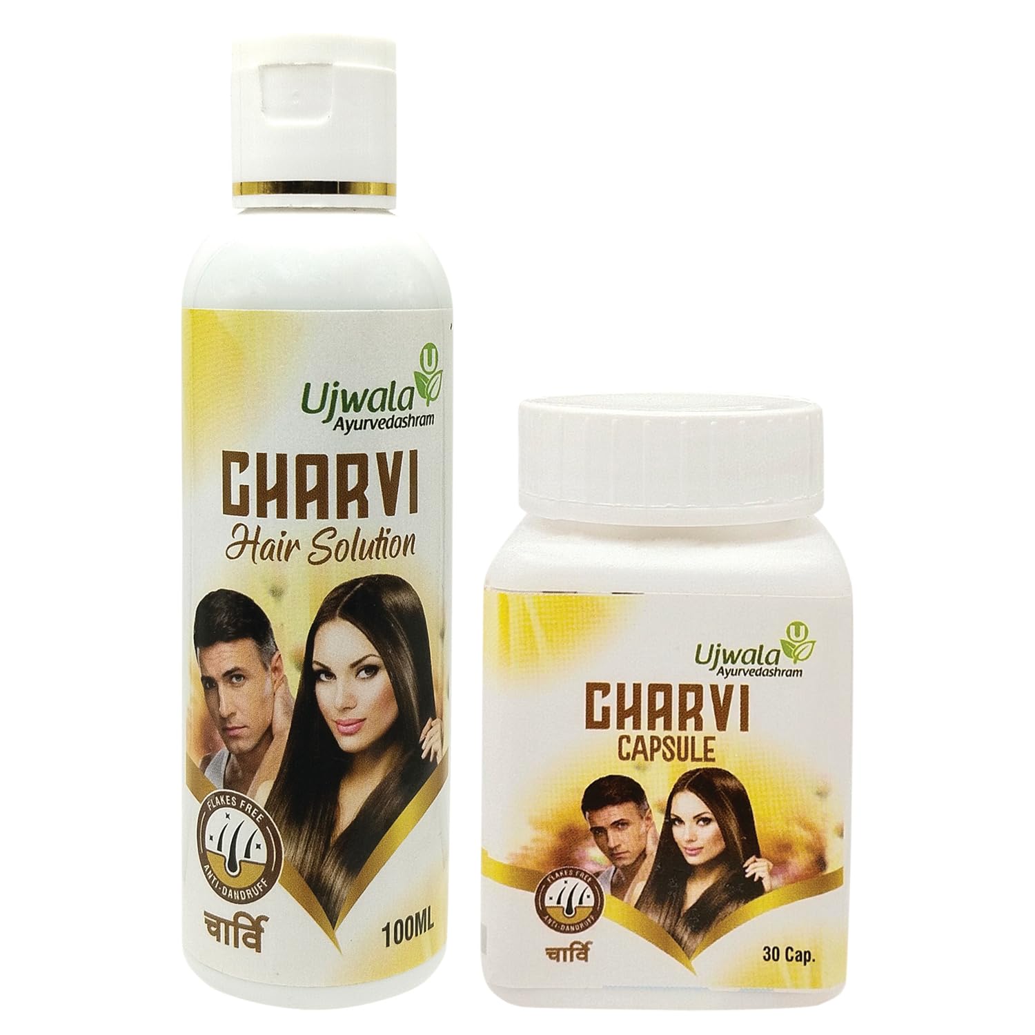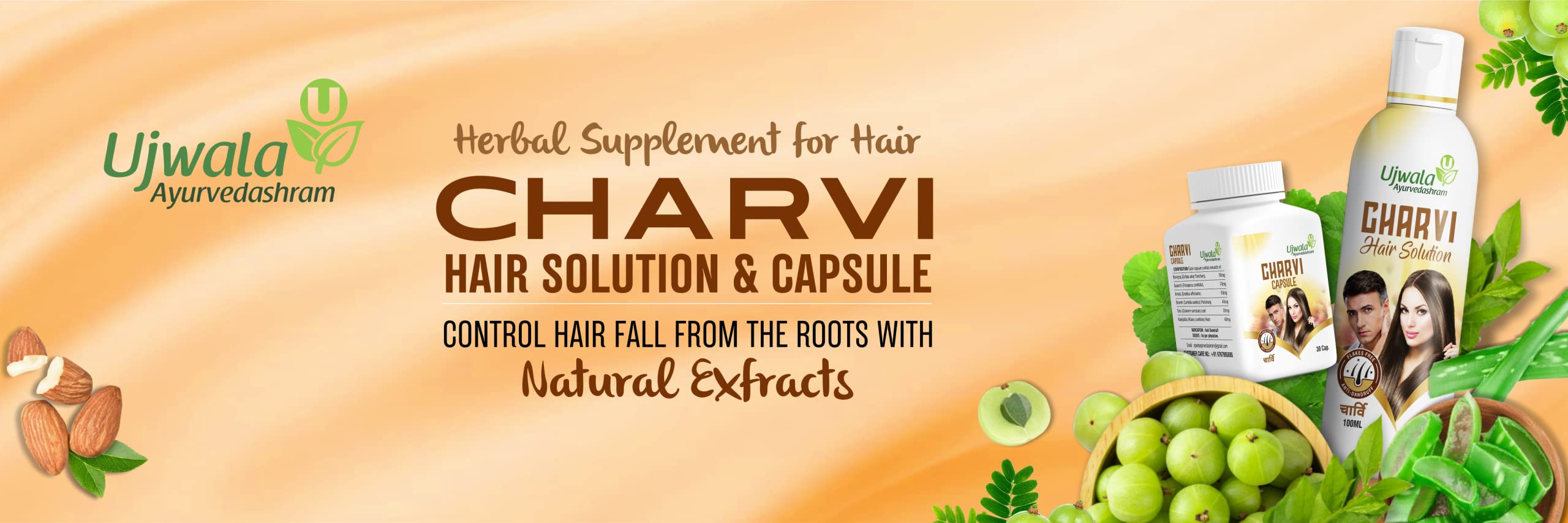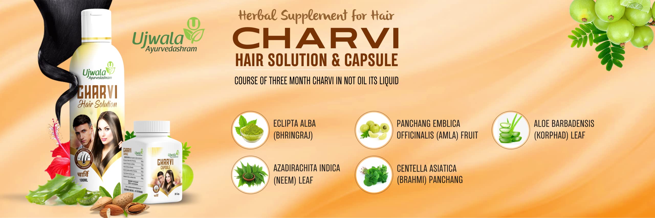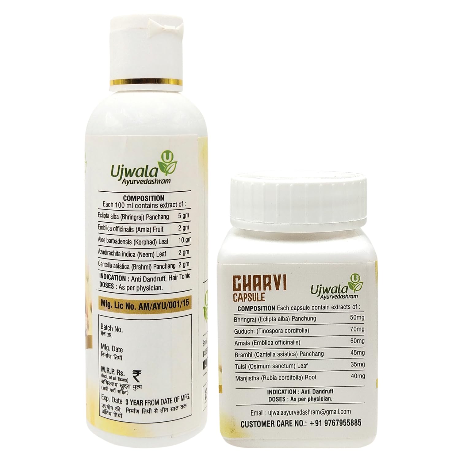 Ujwala Ayurvedashram Charvi Hair Solution Bundle with Charvi Capsule for Hair Nourishment and Hair Fall Control (2 Items)