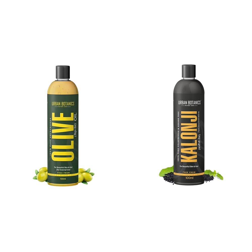 UrbanBotanics Pure Cold Pressed Olive Oil For Hair and Skin 100ml UrbanBotanics Premium Cold Pressed Kalonji Oil - Virgin Grade - Black Seed Oil - Nigella Sativa - 100ml