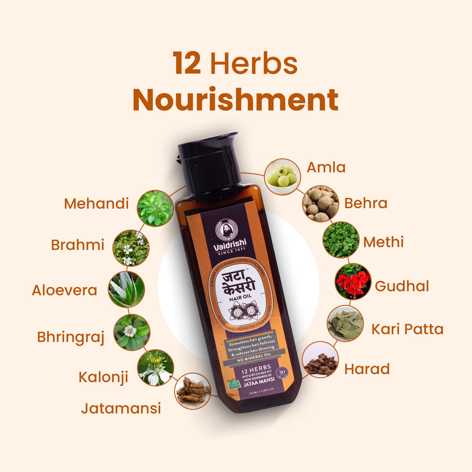 Vaidrishi Jata Kesri Hair Oil | Ayurvedic Solution for Damaged & Weak Hair | Enriched with 12 Herbs Onion Extract and Bhringraj for Strong Healthy Growth | 200 ml