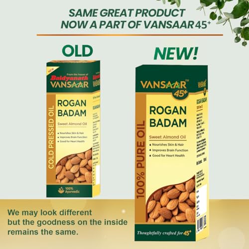 Identified as the best oil with myriad health benefits Baidyanath Vansaar Rogan Badam oil is made from high grade Californian Sweet Almonds. It is an excellent source of Vitamin E magnesium selenium and omega-3 fatty acids which are retained using the cold-pressed extraction method. Rogan Badam an ayurvedic hair oil acts as a natural emollient for hair to help nourish the hair follicles strengthen them and gives you healthy lustrous hair. This almond oil has wide skin benefits and acts as a natural face serum evens out skin tone and in turn reduces skin pigmentation. Topical application of this oil under eyes also reduces puffiness & dark circles.