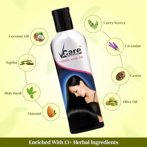 • COMPLETE CARE SOLUTION FOR YOUR HAIR: Elevate your hair care routine with VCare Herbal Hair Oil. It's more than just an oil; it's a holistic solution for healthier stronger and shinier hair. Experience the transformative power of nature in every drop.