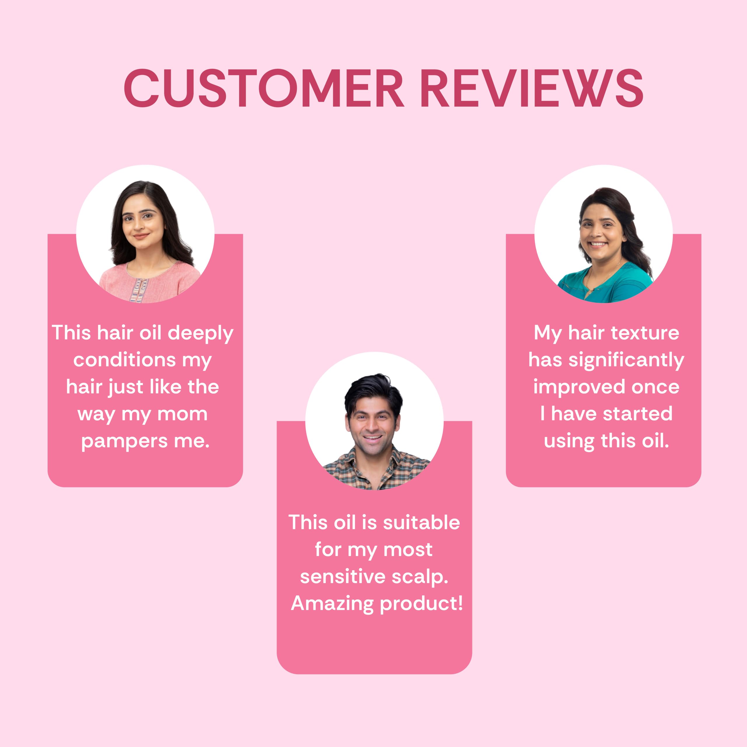 The oil is contains potent herbs like bhringraj, shankhpushpi, triphala etc which help solve all hair problems like hairfall, dandruff, dry and frizzy hair. Its so lightweight that it doesnt stain the pillows or give you forehead acne like some other oils in the market do. This oil is a one-stop solution for all your hair issues.
