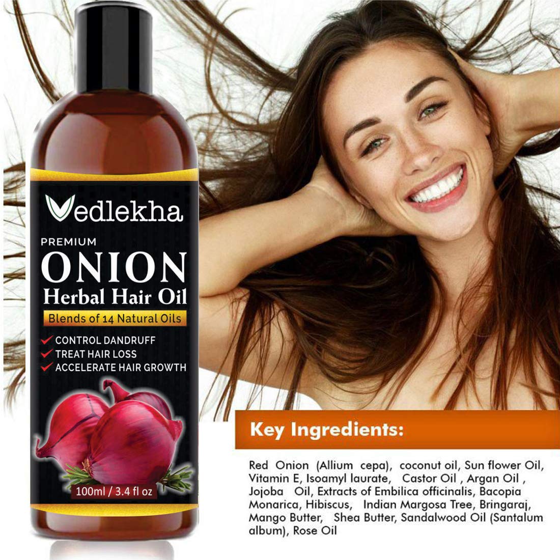 Vedlekha Onion Hair Oil with Red Onion Extract & Anti Dandruff 100ml Packof 3 Bottle (300ml)