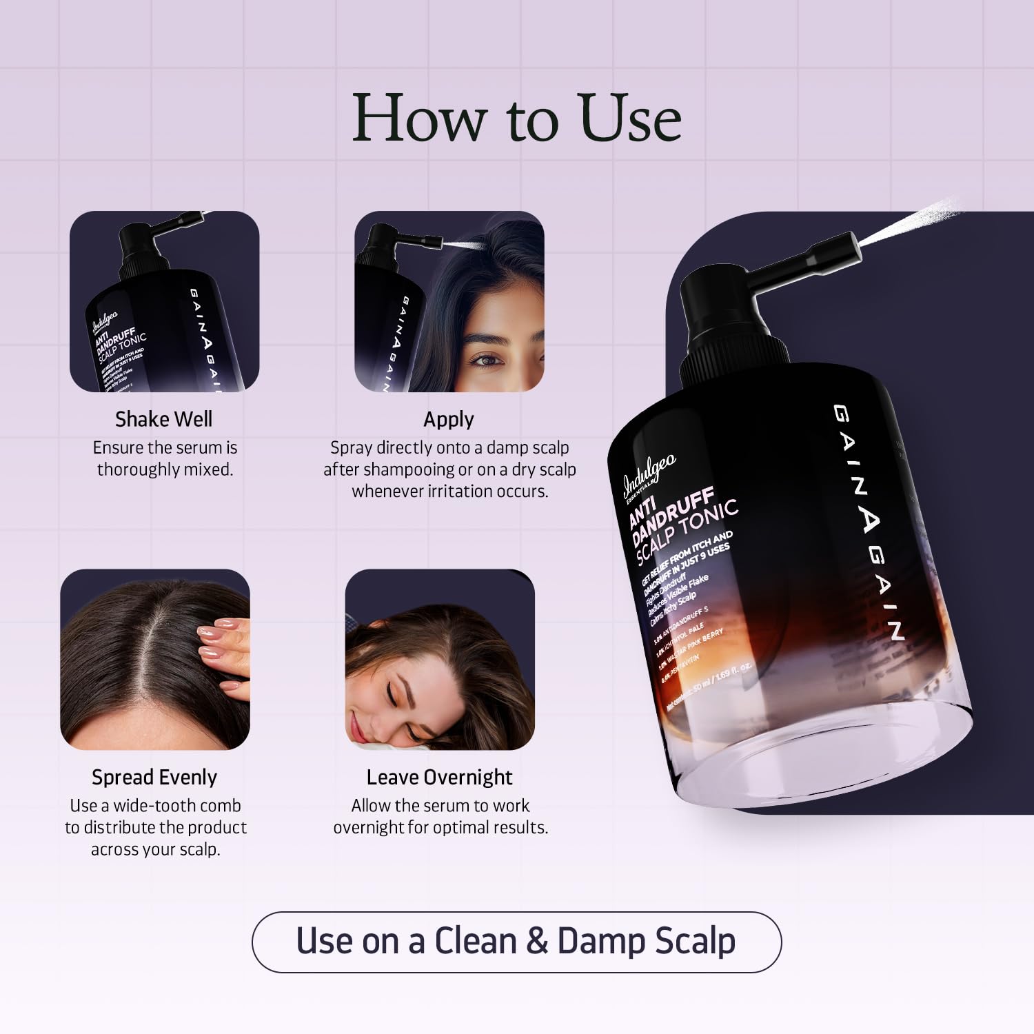Indulgeo Essentials Anti Dandruff Scalp Tonic No Rinse Spray For Healthy Itch Free Scalp | Soothes & Balances Scalp | Dandruff Remover | For Men & Women- 50ml