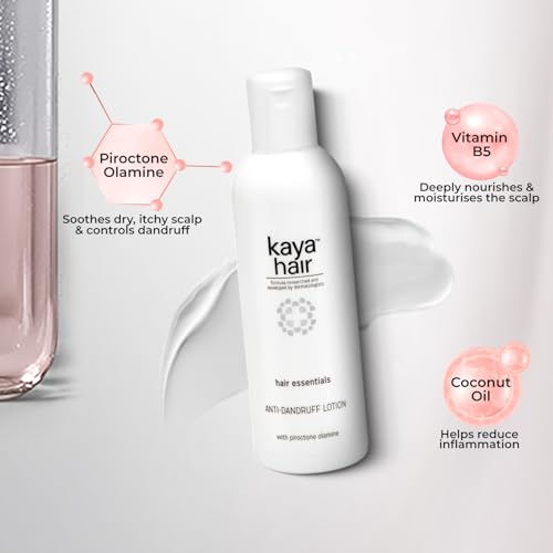 Kaya Anti-Dandruff Lotion combats the root cause of dandruff formation and prevents it from coming back. This overnight lotion enriched with Piroctone Olamine that soothes itchy & irritated scalp. Its highly efficient formula is a blend of dandruff controlling actives that arrest dandruff scales from forming.