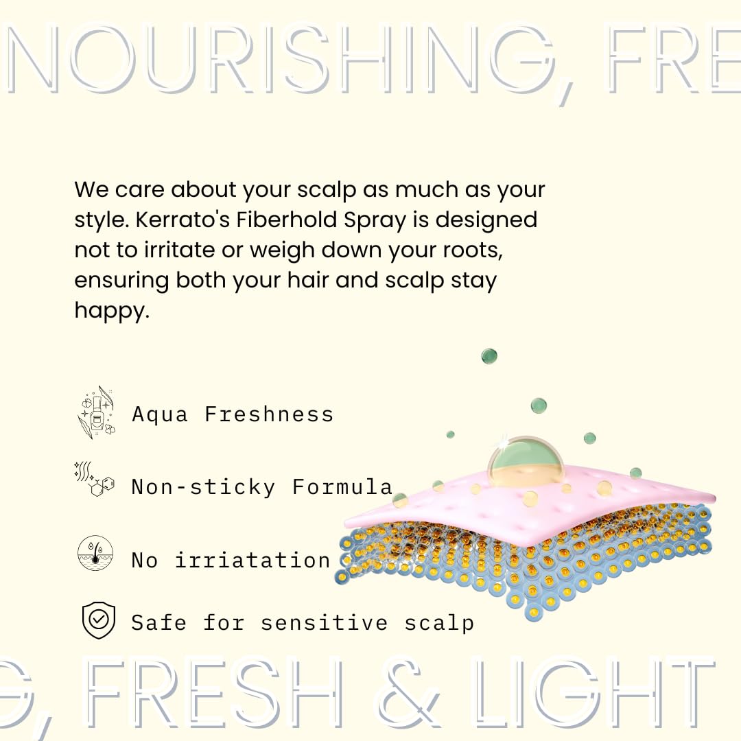 • Kerrato FibreHold Spray helps your fibres stay intact with your hair through extreme sweat wind and any other vigorous factors.