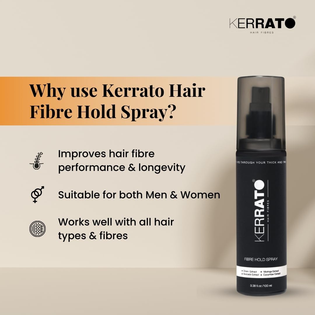 HomeHealth & PersonalHair CareHair Protect SerumKERRATO HAIR FIBRES Unisex Water Resistant Locking Spray for All Hair Building Fibers (100ml) | Strong Hold All Day | Fiber Holding Sray Hair Spray Pack of 1