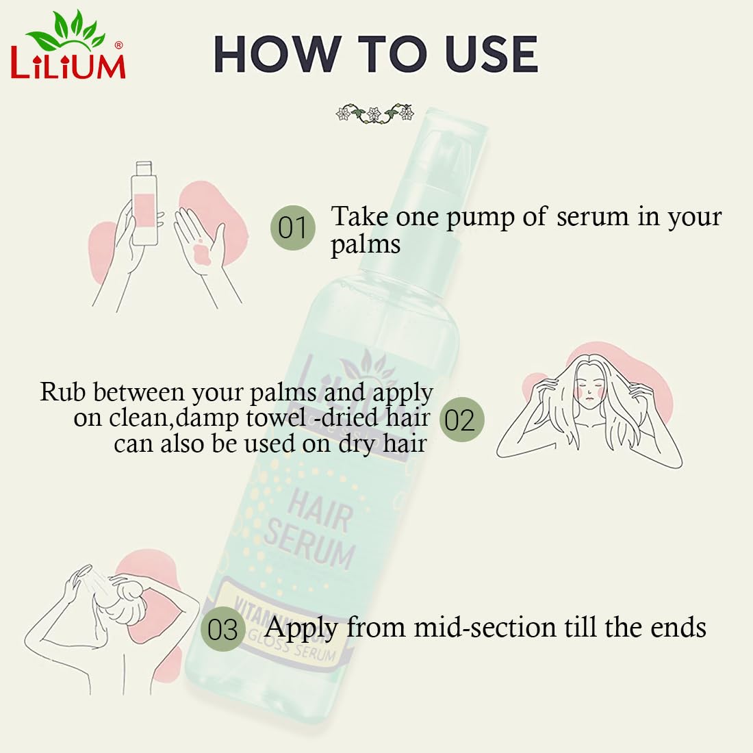 • [REVITALIZER DRY & FRIZZY HAIR] Lilium Hair Serum revitalizes and strengthens your dry and frizzy hair. It imparts a natural shine and smoothness to your hair strandsThis hair serum is one of the big solution for frizzy rough and dry hair