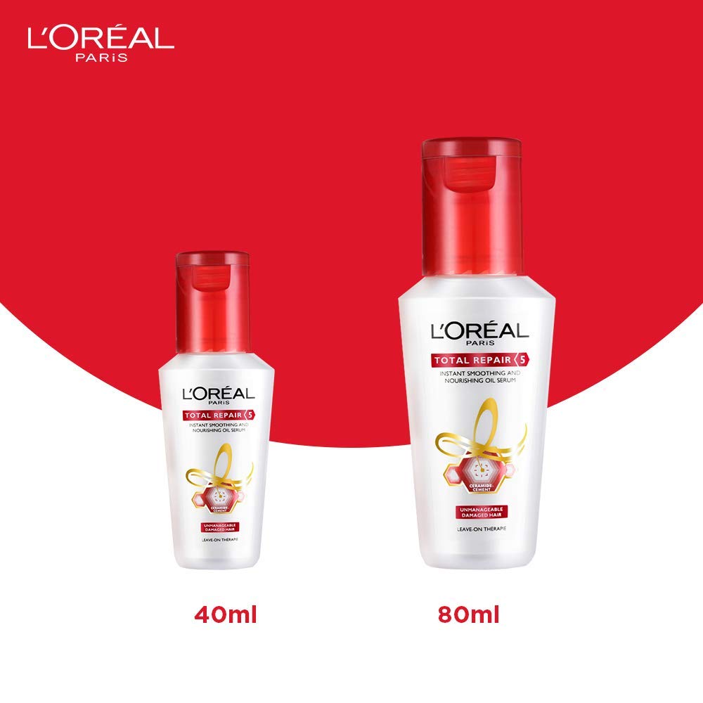 L'Oreal Paris Serum For Damaged and Weak Hair With Pro-Keratin + Ceramide Total Repair 5 80ml (Pack of 2)