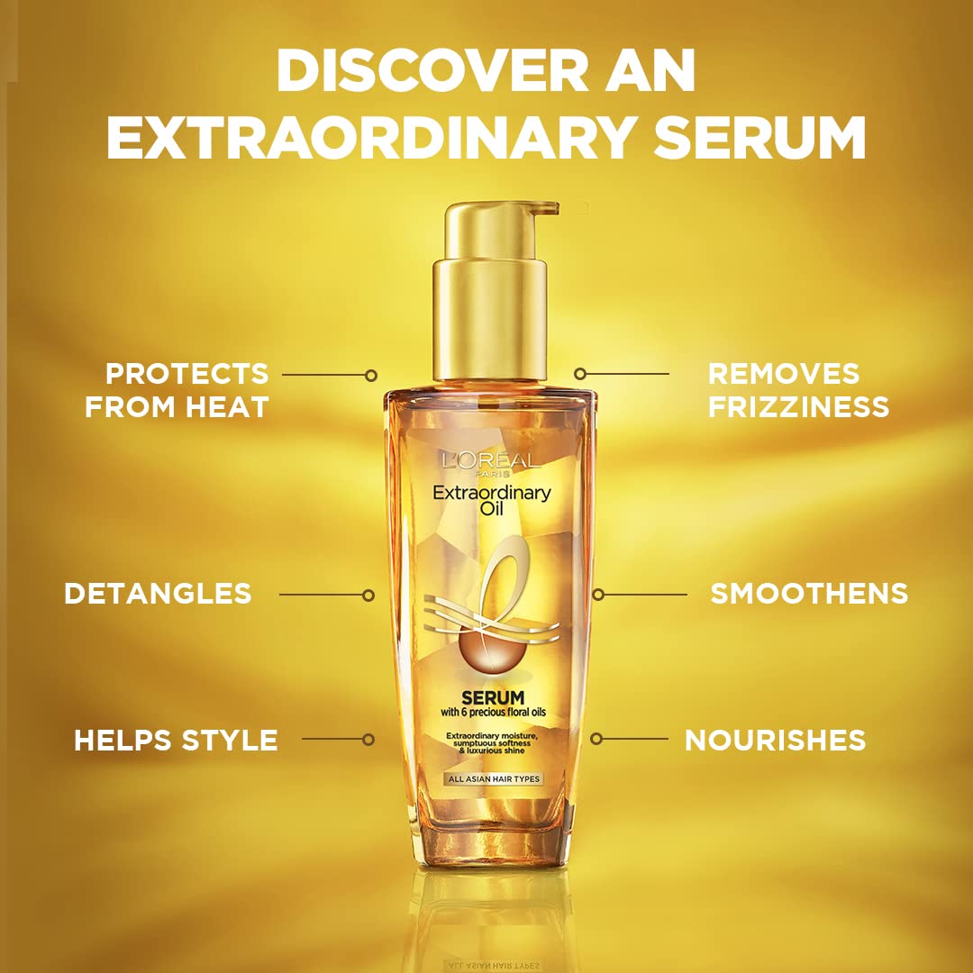 L'Oreal Paris Serum Protection And Shine For Dry Flyaway & Frizzy Hair With 6 Rare Flower Oils Extraordinary Oil 100Ml (Pack Of 2)