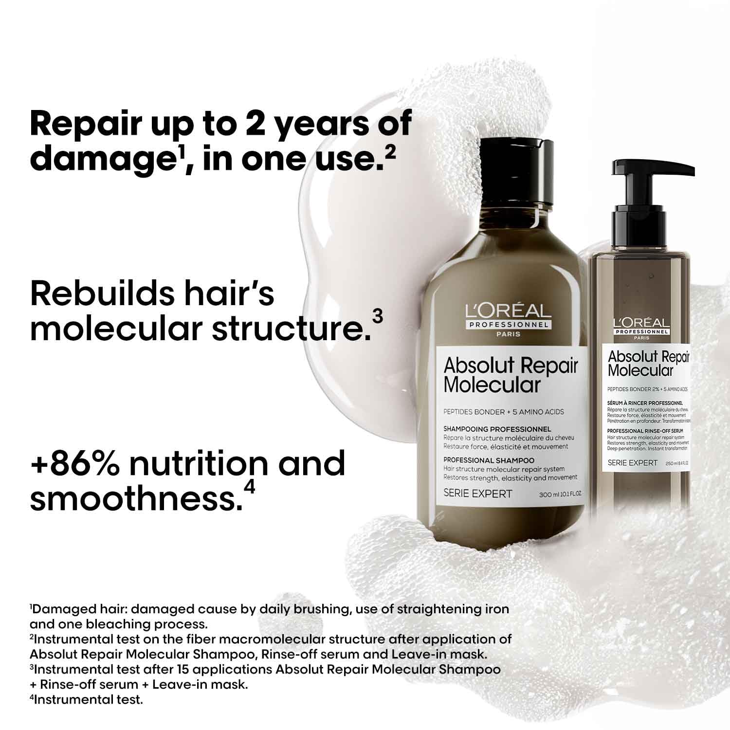 L'Oreal Professionnel Absolut Repair Molecular Sulfate-Free Deep Repairing Shampoo Rinse-Off Serum & Leave-In Mask Combo for Damaged Hair