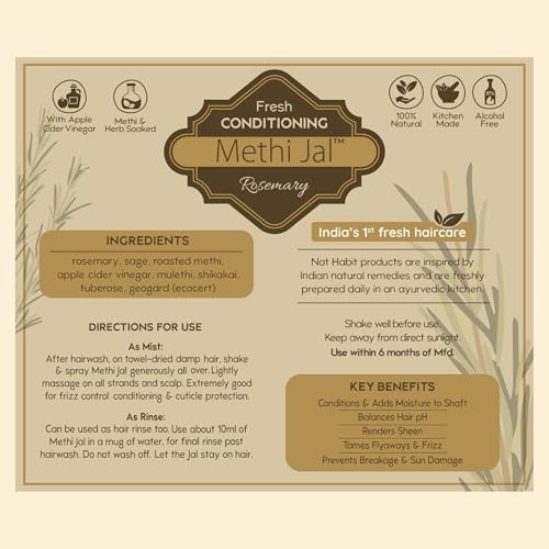 Nat Habit Rosemary Conditioning Methi Jal - Hair Serum, Hair Spray For Hair Growth, Hairfall Control, Smoothening, Softening With Apple Cider Vinegar,Methi, Rosemary & Sage 200ml