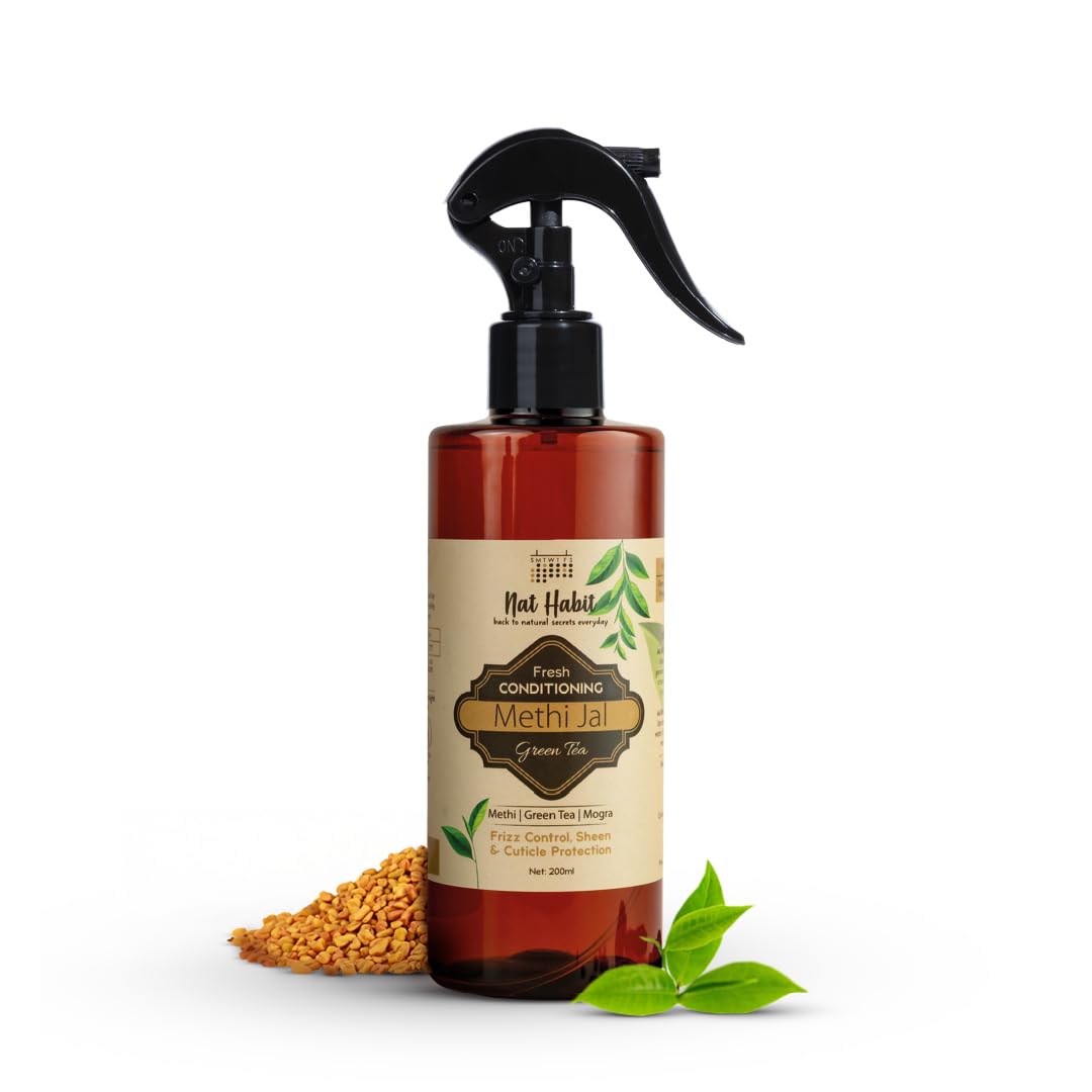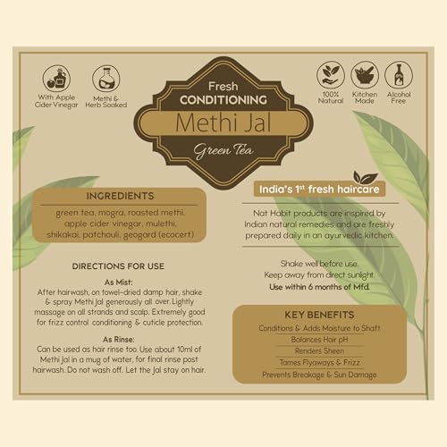 Nat Habit Green Tea Conditioning Methi Jal -Hair Serum, Hair Spray For Hair Growth, Hairfall Control With Apple Cider Vinegar,Methi,Green Tea & Herbs 200ml