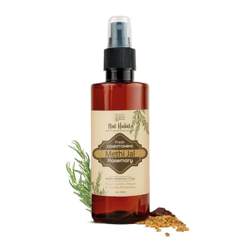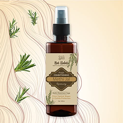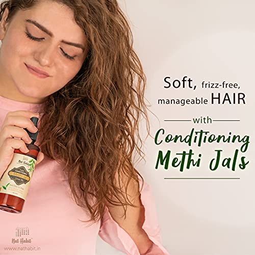 Nourishing Methi Jals prepared with deep soak & steam distillation of methi herbs & flowers. These conditioning ayurvedic hair mists moisturise the hair shaft and protect cuticles from opening and getting damaged. They also have pure apple cider vinegar that strengthens the strands and gives a nourished sheen to the mane.