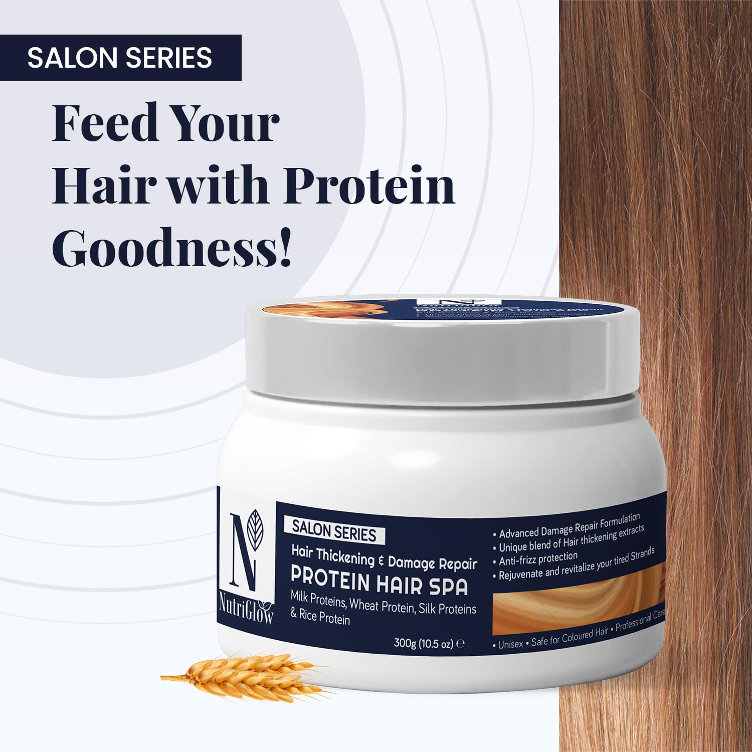 • NutriGlow Salon Series Protein Hair Spa tames unruly hair and creates a protective barrier against environmental stressors
