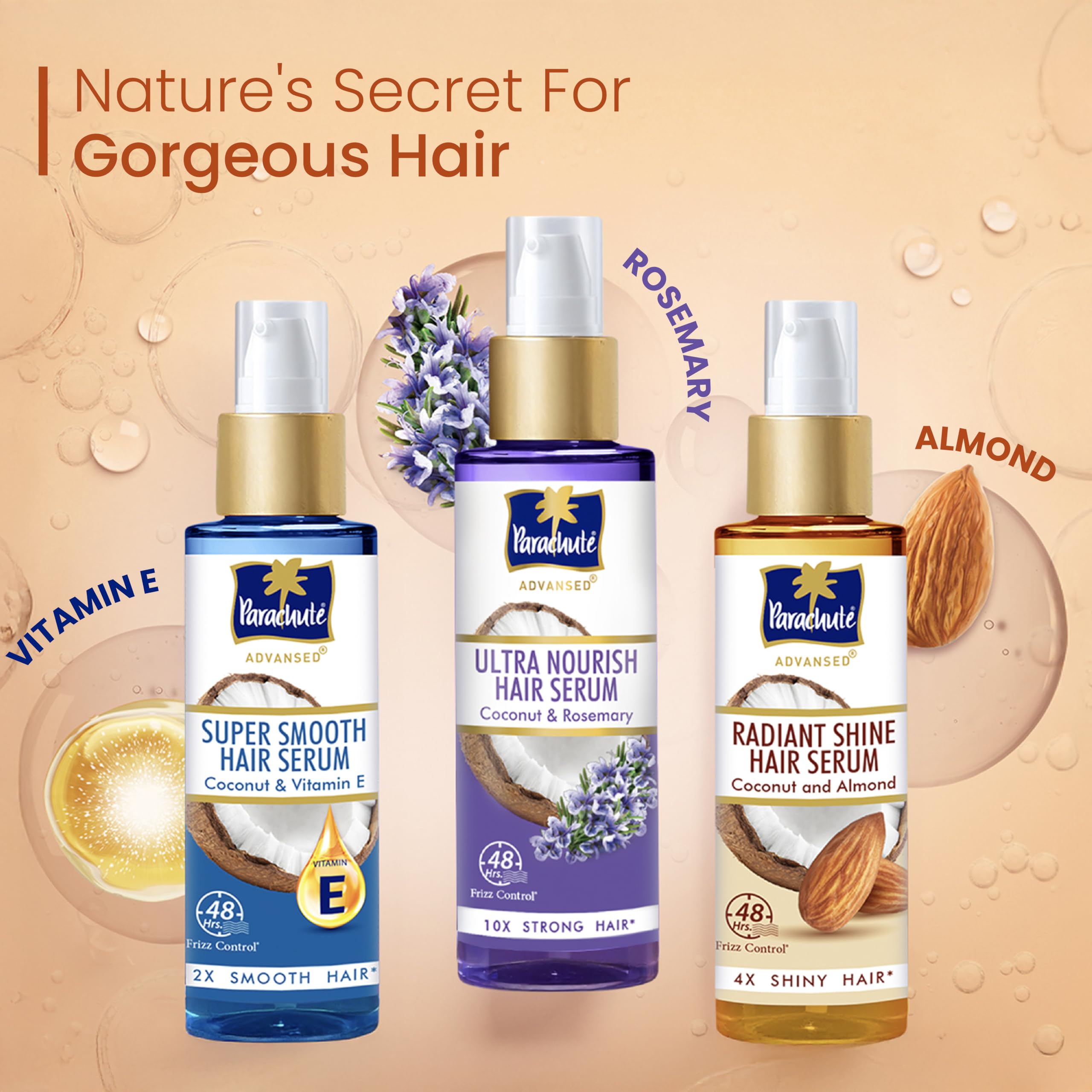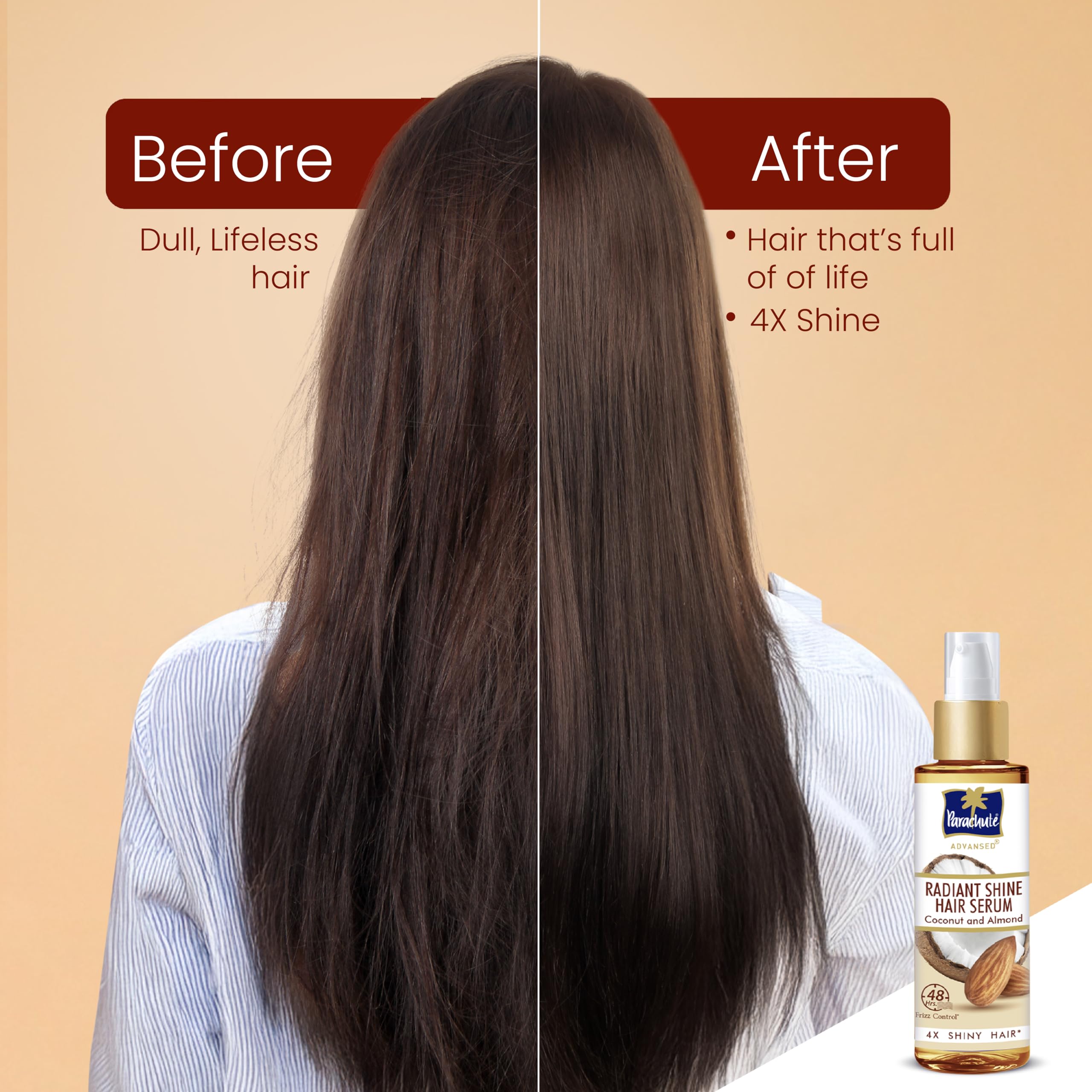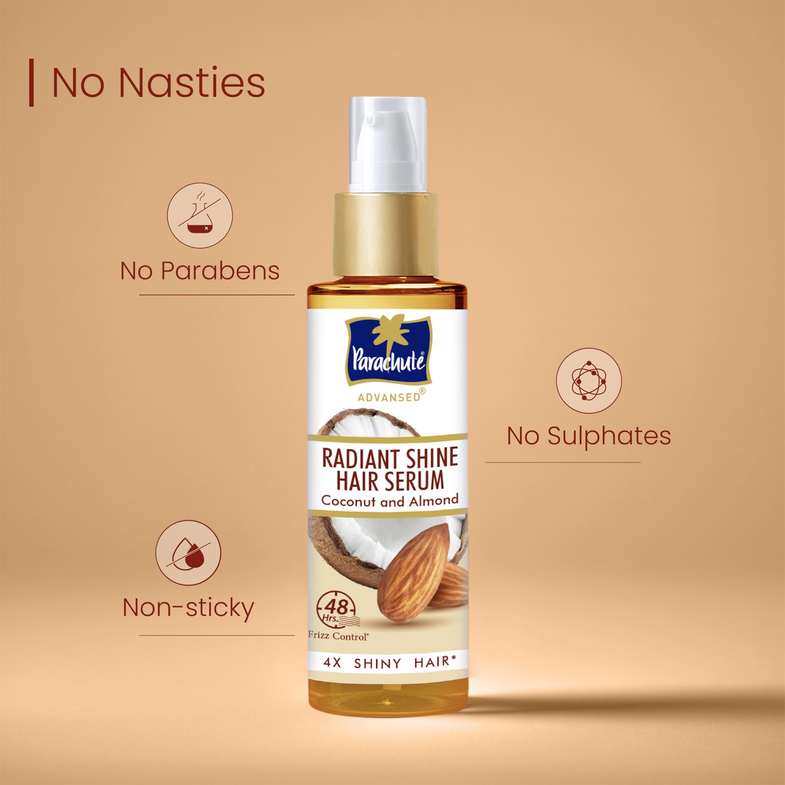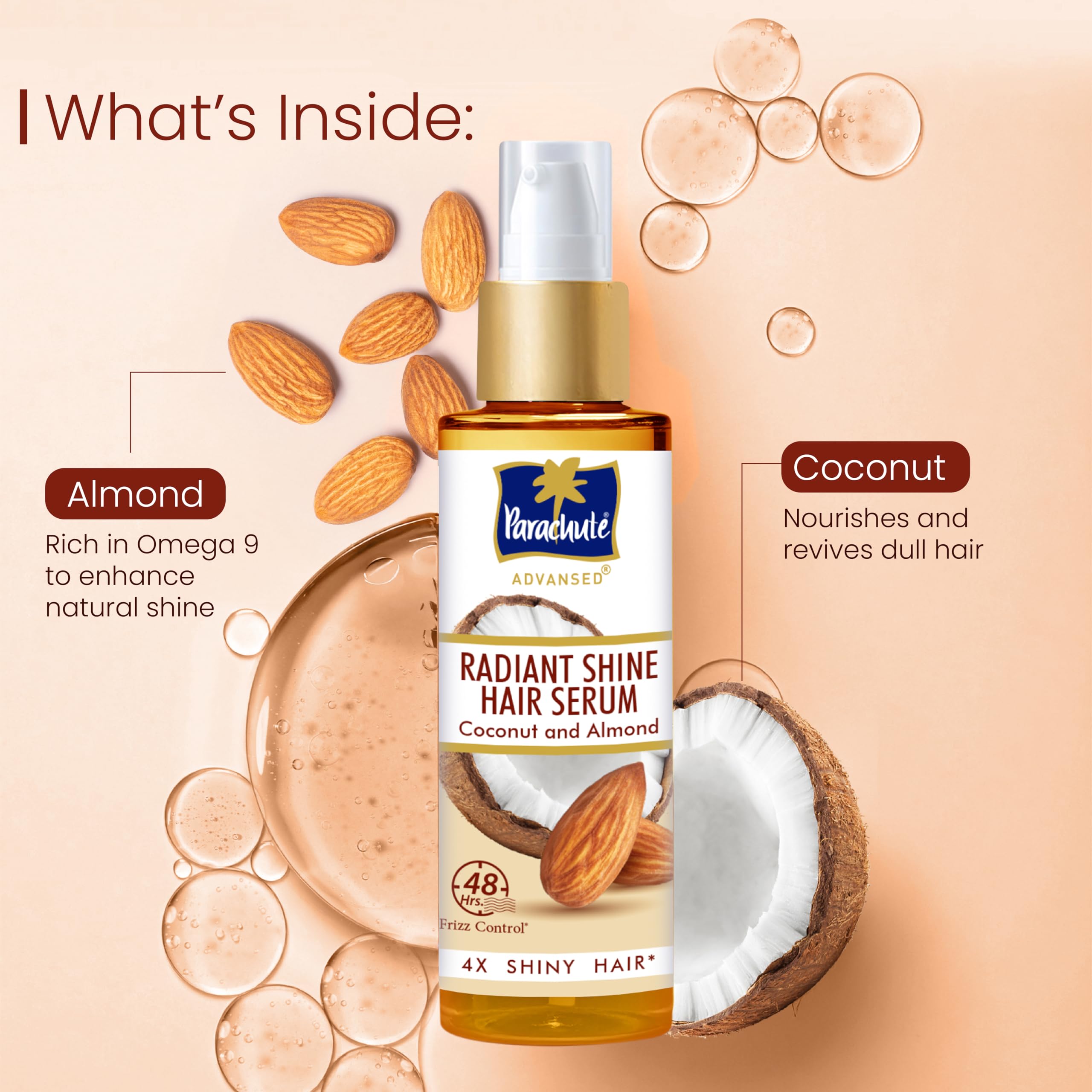 Parachute Advansed Radiant Shine Hair Serum | Coconut & Almond | 48 Hr Frizz Control | 10X Strong Hair | 100ml