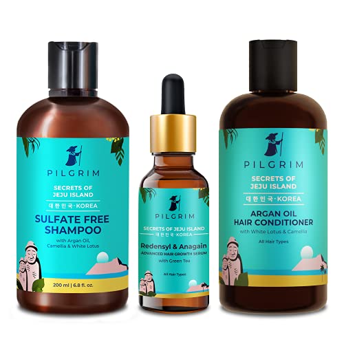 PILGRIM Korean Advanced Hair Growth Regime | Redensyl 3% & Anagain 4% Hair Serum 50ml,Sulphate-Free Shampoo 200ml & Hair Conditioner 200ml | For All Hair Types | For Men & Women