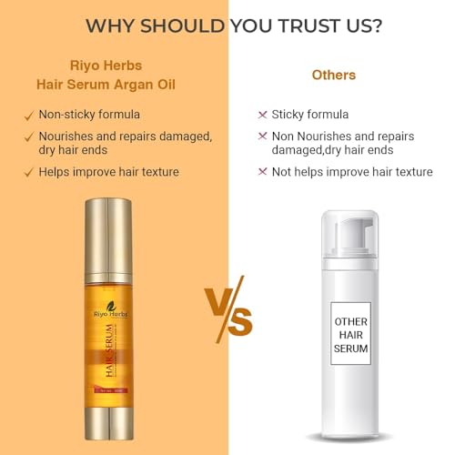 Riyoherbs Argan oil enriched hair serum helps to nourish your hair and repair damage dry hair ends giving detangled lustrous hair. recommended for all types of chemically treated hair (keratin botox smoothening coloured hair)Key IngredientsArgan Oil Sweet Almond Oil Jojoba OilWhy choose riyoherbs hair serum ?Non-sticky formula enriched with the goodness of argan oil sweet almond oil & jojoba oil.Nourishes and repairs damaged dry hair ends.Gives detangled lustrous hair that lasts all day.Specially designed for chemically treated hair ( keratin botox smoothening coloured hair)Promotes shine controls frizz moisturises scalp with natural oils.