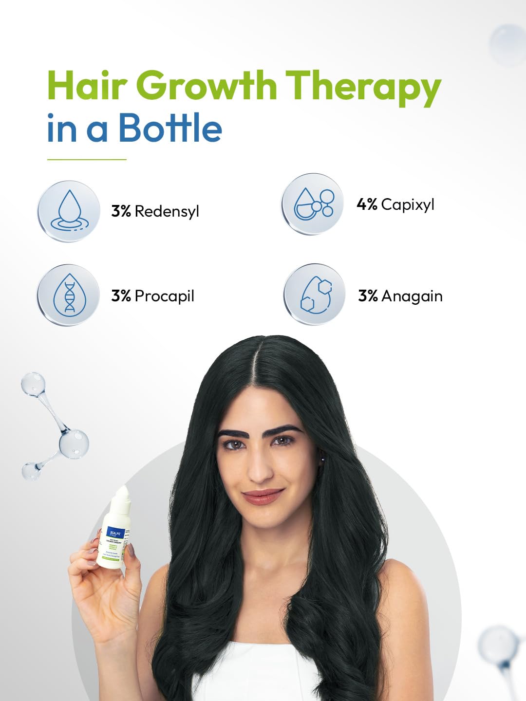 A THERAPY FOR HAIR GROWTH Scalpe Pro Hair Growth Serum contains ingredients like Redensyl Capixyl Procapil and Anagain that help promote hair growth prevent hair thinning strengthen hair follicles nourish the scalp from within and reduce hair loss.