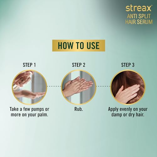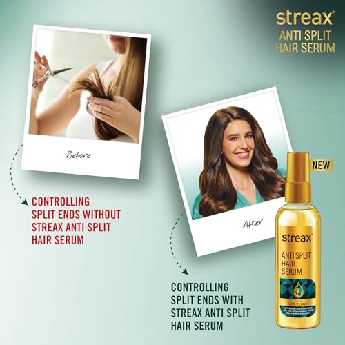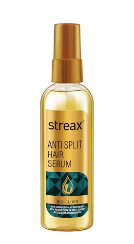 • 1. Streax anti split ends helps reducing dryness of hair which leads to hair breakage and split ends 2. It is infused with bioelixir which is combination of 12 nutri functional oils which is mix of nuts seeds herbs & fruits like argan oil cotton seed oil