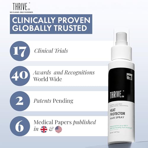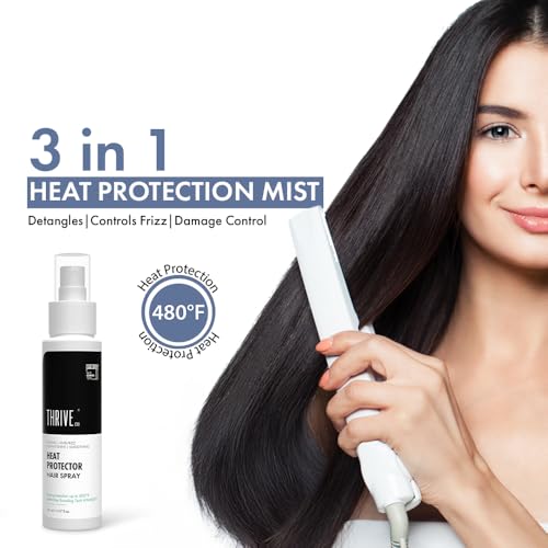 ThriveCo Heat Protector Hair Spray is infused with bond-building technology - Hyaplex (TM) that protects your hair with every spray. It provides heat protection up to 480°F from all heating tools: straightening curling blow dryer etc. This means your hair looks fabulous all the while staying damage-free.