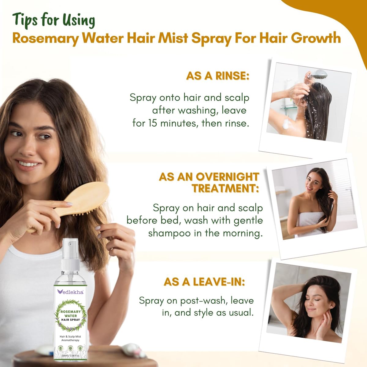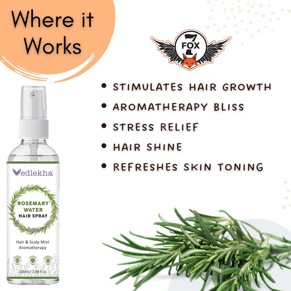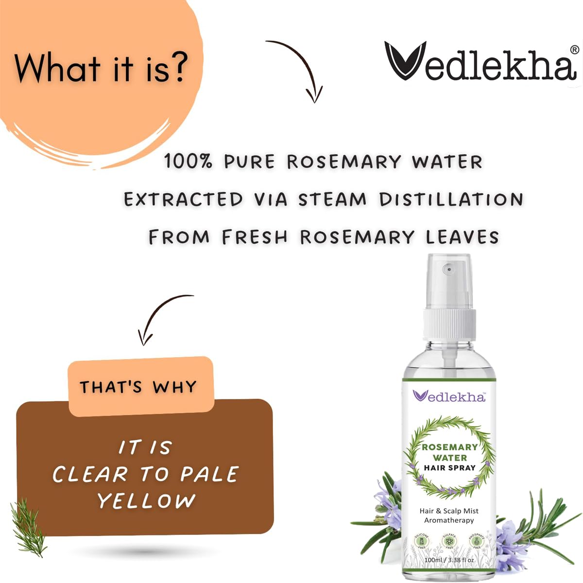 Vedlekha Rosemary Water Spray Rose Mary Water for Hair Growth Rosemary Hair Mist Strengthens Hair Suitable For All Hair Types (100 ml)