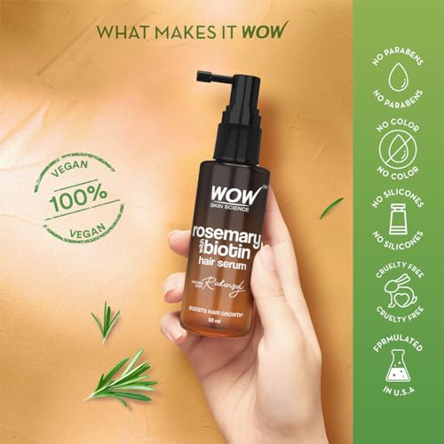 • Revitalizes Weak & Thin hair: Stimulate your roots and help promote hair growth with WOW Skin Science Rosemary With Biotin Hair Serum. This lightweight hair serum has rosemary oil which is a natural ingredient while biotin and redensyl are potent actives.