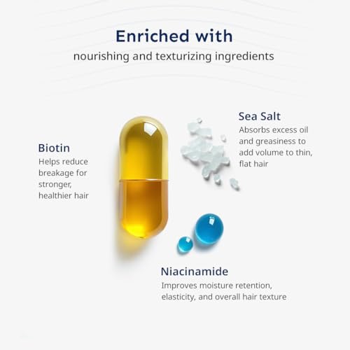 • STRENGTHEN HAIR WITH POWERFUL INGREDIENTS: Packed with potent ingredients like biotin known for stimulating keratin production along with niacinamide and sea salt our formula strengthens hair strands giving your hair a thicker denser volumnous look!