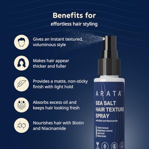 Arata Sea Salt Hair Texture Spray - 50ml | With Niacinamide & Biotin | For Instant Volume, Texture & Beachy Waves | Matte Finish | No-Alcohol Formula For Men & Women | Made For All Indian Hair Types