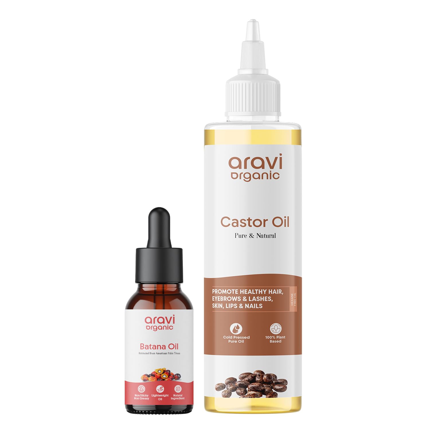Aravi Organic Batana 15ml + Castor Oil 200ml - Strengthening & Nourishing Hair & Skin Care Solution