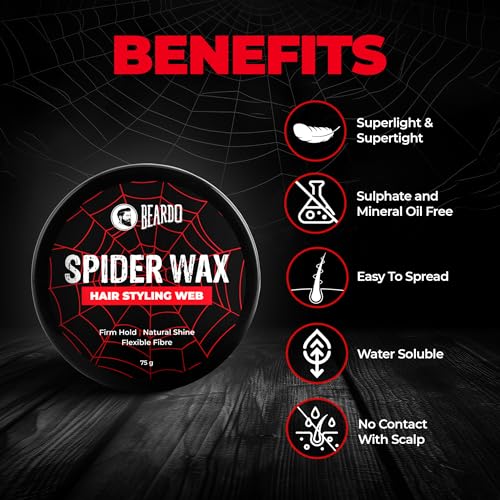 Get ready to unleash your inner Spiderman with Beardo Spider Wax! Say goodbye to bad hair days and hello to salon-inspired textured hairstyles. Crafted with safe organic ingredients this wax offers a firm hold without touching your scalp ensuring it's safe for all hair types. Whether you're rocking a mullet textured crop or channeling your inner wolf Beardo Spider Wax sculpts even the curliest thickest or messiest hair with ease. Embrace natural shine and a strong hold for hair that feels superlight yet super tight.