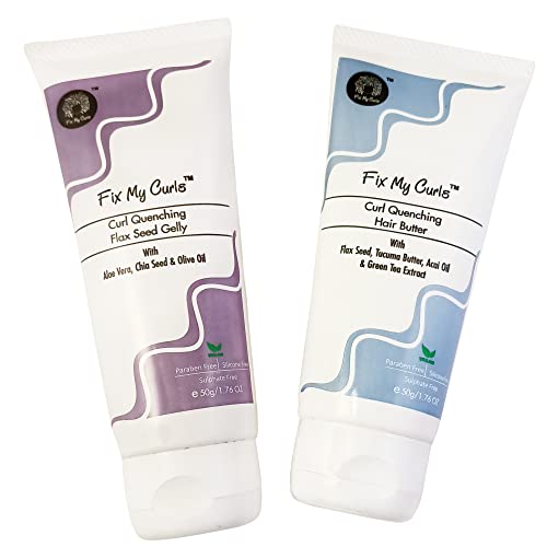Fix My Curls Curl Quenching Moisture Styling Duo | For Curly, Wavy, Dry, Frizzy Hair | Enriched With Aloe Vera, Chia Seed, and Flax Seed | Silicone Free Curl Activator | Frizz Control | 50gm each