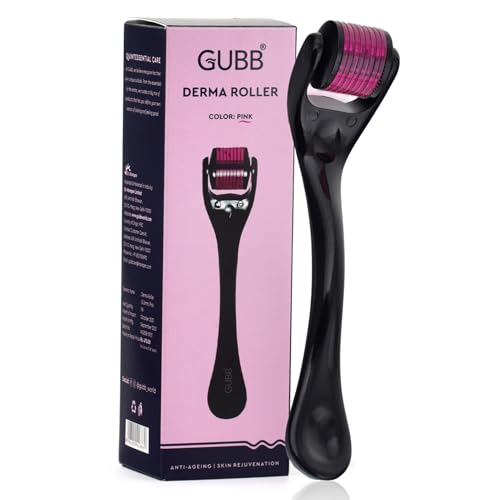 GUBB Derma Roller 0.5mm for Face - Microneedling Tool for Acne Scars,Wrinkles,Beard Growth Stimulator,Skin Rejuvenation,Stretch Marks,Glowing Skin and Hair Regrowth - Pink