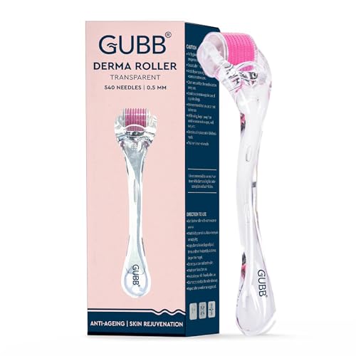 GUBB Derma Roller 0.5mm for Face - Microneedling Tool for Acne Scars,Wrinkles,Beard Growth Stimulator,Skin Rejuvenation,Stretch Marks,Glowing Skin and Hair Regrowth - Transparent Pink