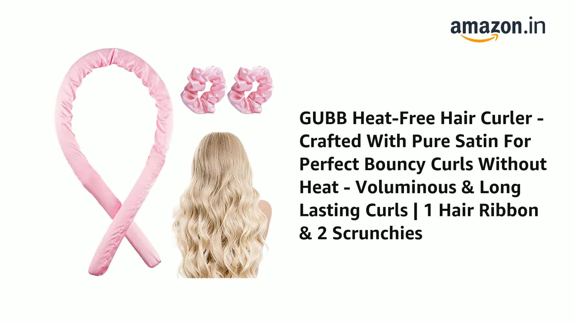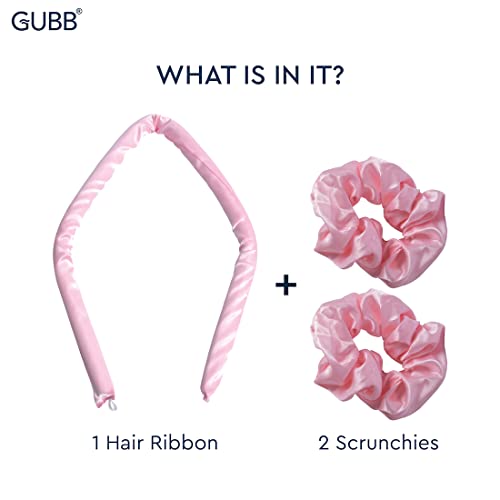 GUBB Heatless Hair Curler - Crafted With Pure Satin For Perfect Bouncy Curls Without Heat - Voluminous & Long Lasting Curls | 1 Hair Ribbon & 2 Scrunchies