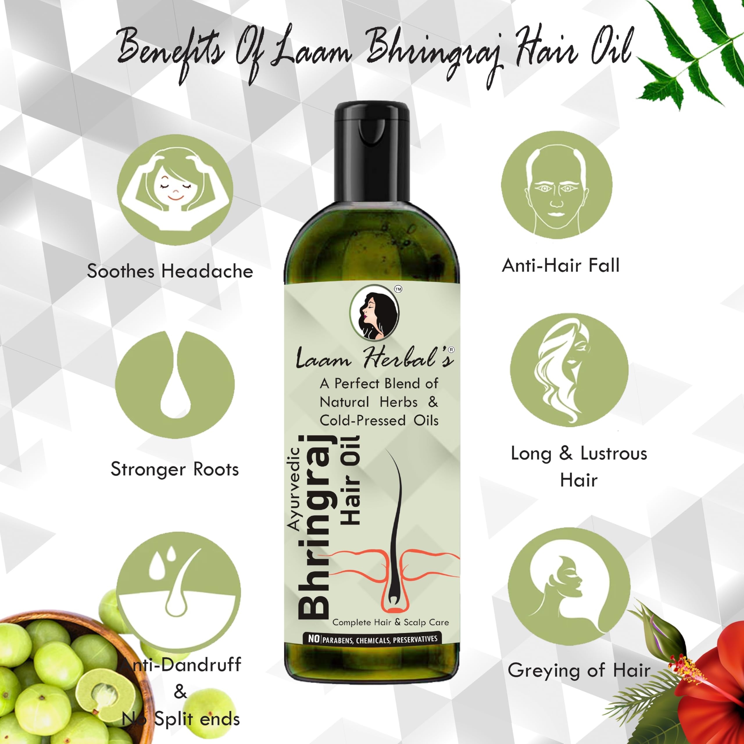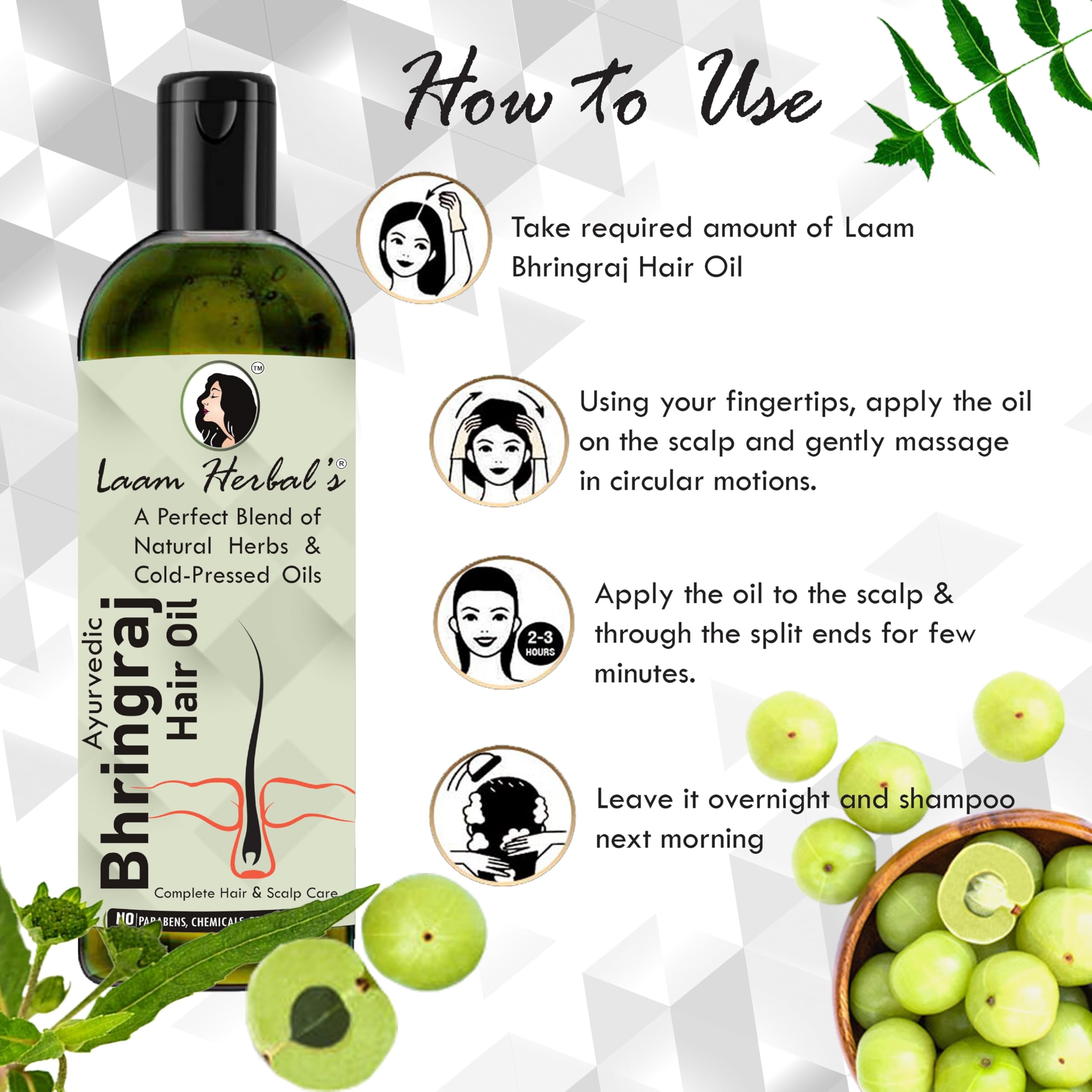 Laam manufacture ayurvedic oil for hair care just by simple herbs that contain great healing properties.This hair oil is perfectly blended hair oil with total 13 cold-pressed oils and natural herbs. Ingredients: Til Oil Flax seed Oil Castor Oil Bhringraj Amla Meethi Bhrami Hibiscus JatamansiAloe vera Shikakai Basil and Neem Oil.