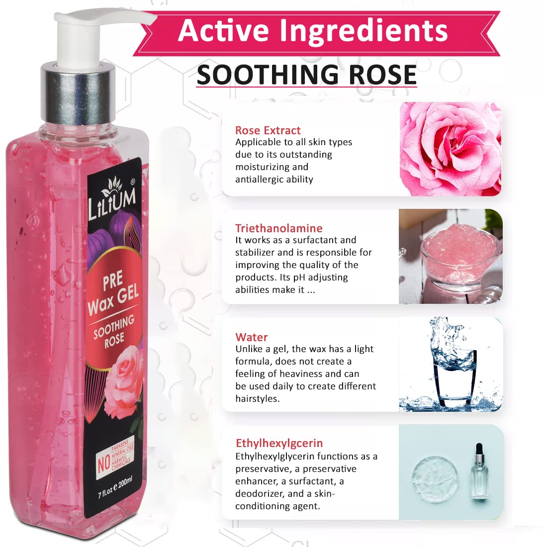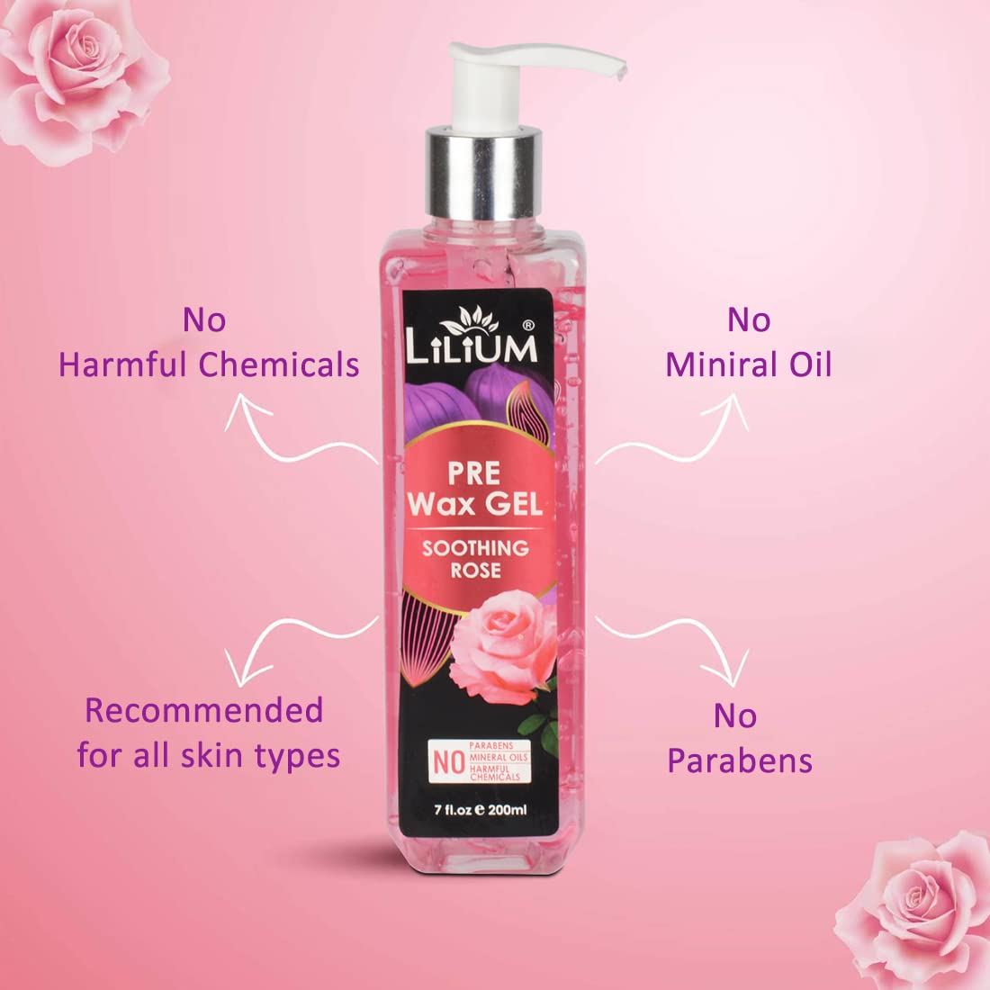 Lilium Pre Wax Gel Soothing Rose 200ml For Soft And Nourishing The Skin No Parabens No Mineral Oils No Harmful Chemicals.