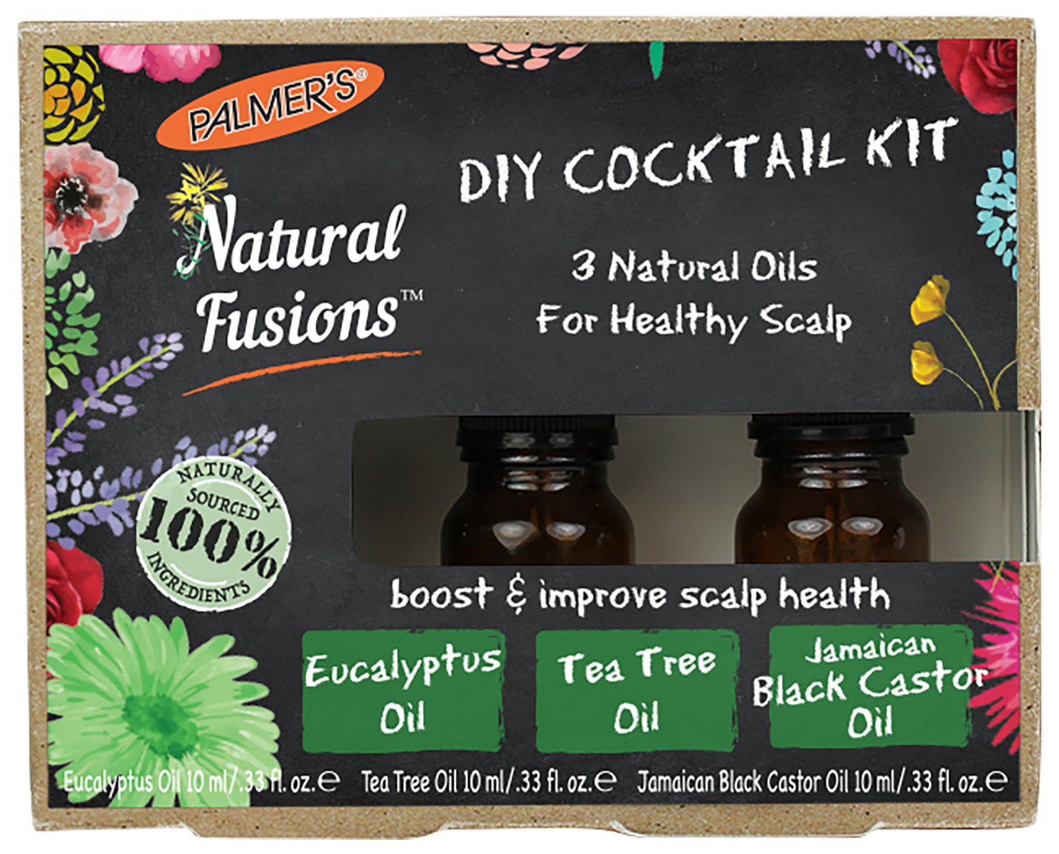 Be your own mixologist! Try Palmer's natural fusions healthy scalp DIY kit for shine hydration and a healthy scalp. This kit contains three 100% natural oils perfect for cocktailing into your hair products to help boost scalp health. Palmer's natural fusions kit takes the guesswork out of DIY home-blended concoctions and uses only the purest ingredients to care for your hair and scalp. These natural oils can be cocktailed into your favourite hair products as a booster for top scalp concerns including dryness flakes itch and odour recipe card included with kit for tips to be your own mixologist! This pack contains: eucalyptus oil: an essential oil obtained from the leaves of the eucalyptus tree this oil has a mild tingly sensation that soothes itch and helps keep scalp hydrated and clear.