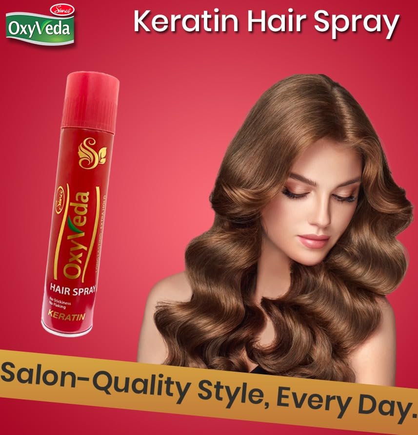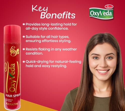 Simco Oxyveda Hair Spray | Keratin | Professional Salon Quality | Anti-Frizz | Volumizing | Smoothing | Long-Lasting Hold | Pure Fresh And Beautiful | Suitable for All Hair Types | 300ml